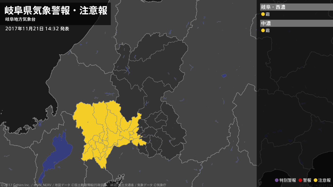 【岐阜県 気象警報・注意報 2017年11月21日 14:32】