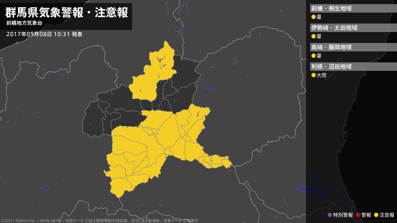 【群馬県 気象警報・注意報 2017年09月08日 05:10】