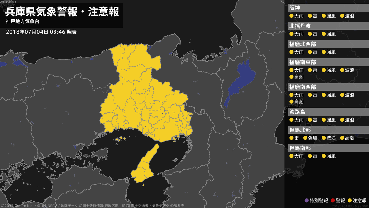 【兵庫県 気象警報・注意報 2018年07月04日 03:46】