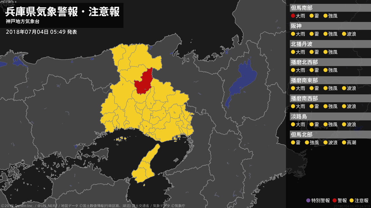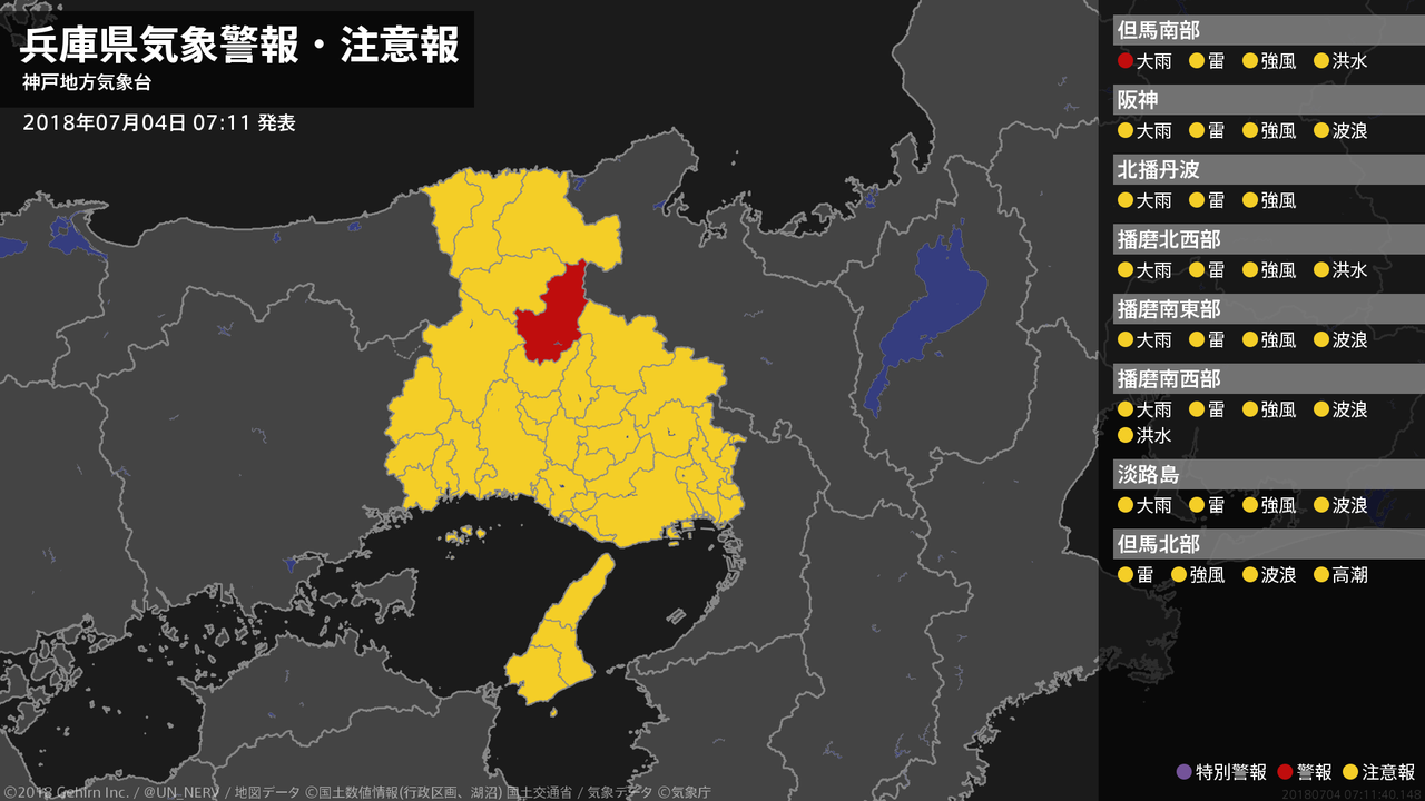 【兵庫県 気象警報・注意報 2018年07月04日 07:11】