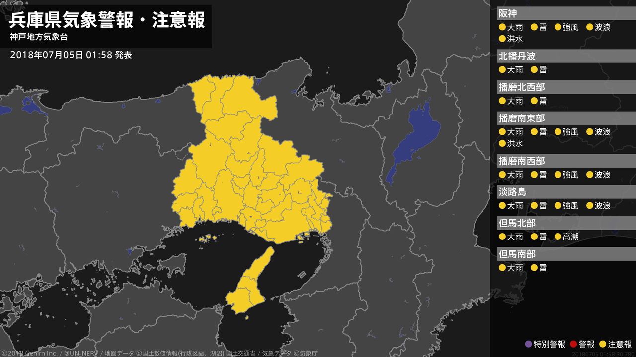【兵庫県 気象警報・注意報 2018年07月05日 01:58】