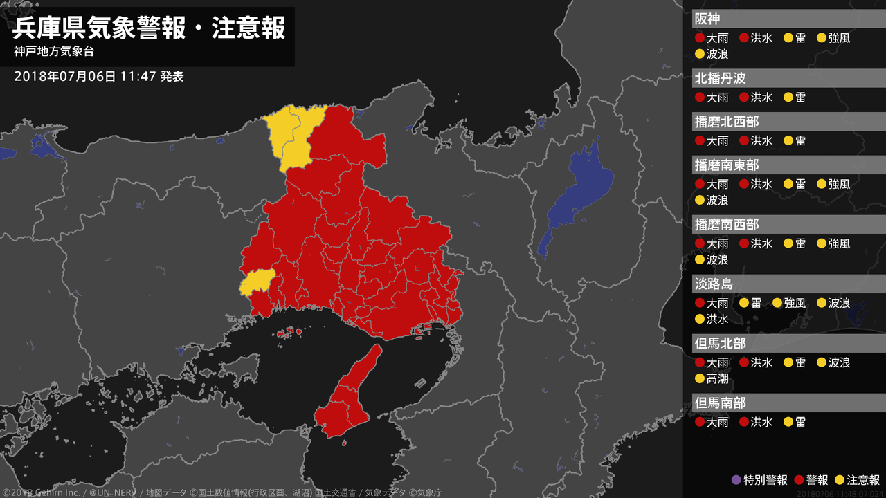 【記録的な大雨に関する全般気象情報 2018年07月06日 19:42】