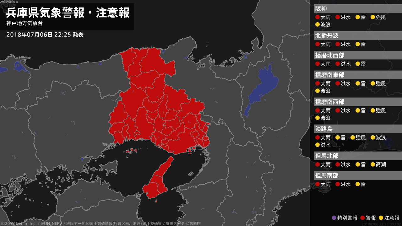 【兵庫県 気象情報 2018年07月06日 23:58】