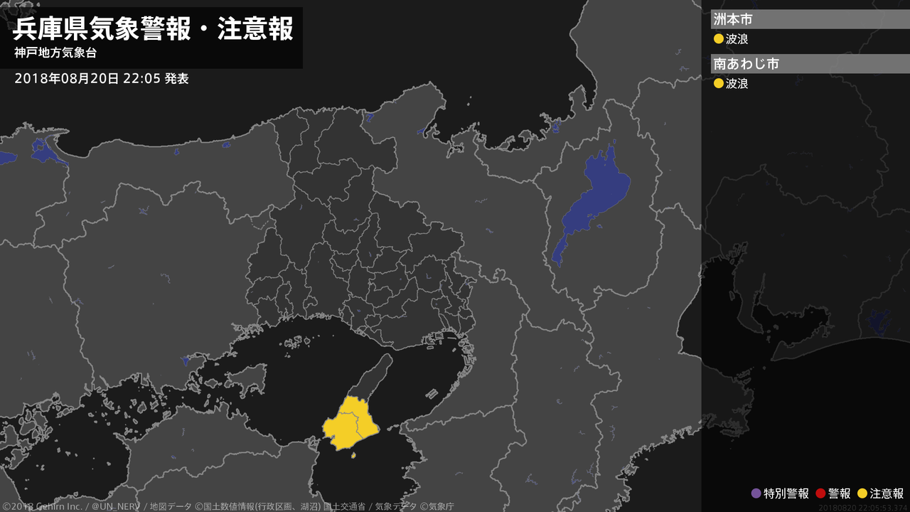 【兵庫県 気象警報・注意報 2018年08月20日 22:05】