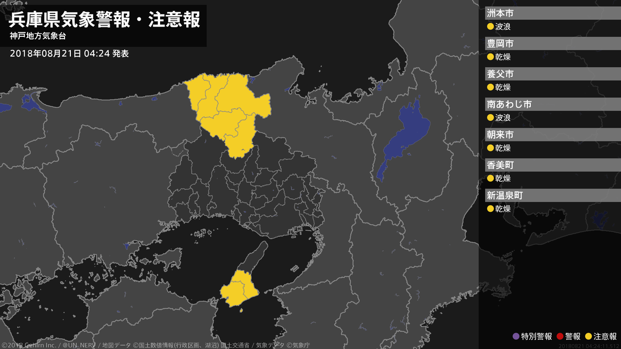 【兵庫県 気象警報・注意報 2018年08月21日 04:24】
