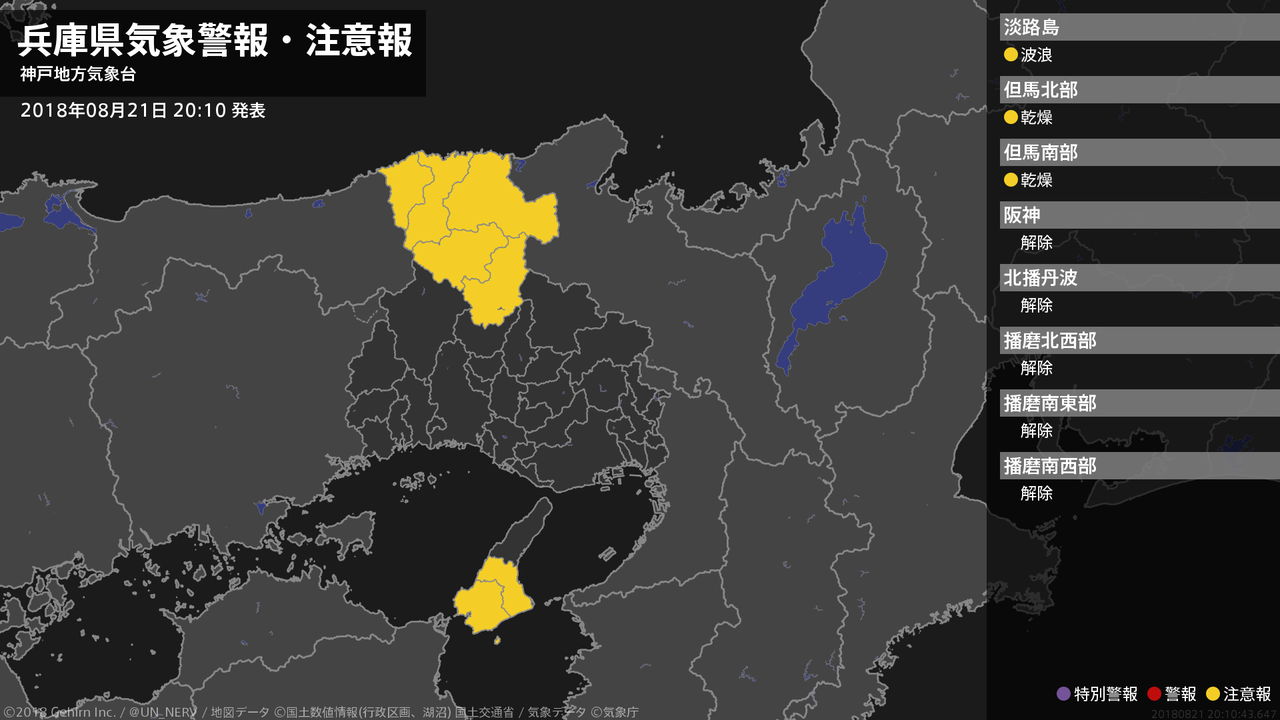 【兵庫県 気象警報・注意報 2018年08月21日 20:10】