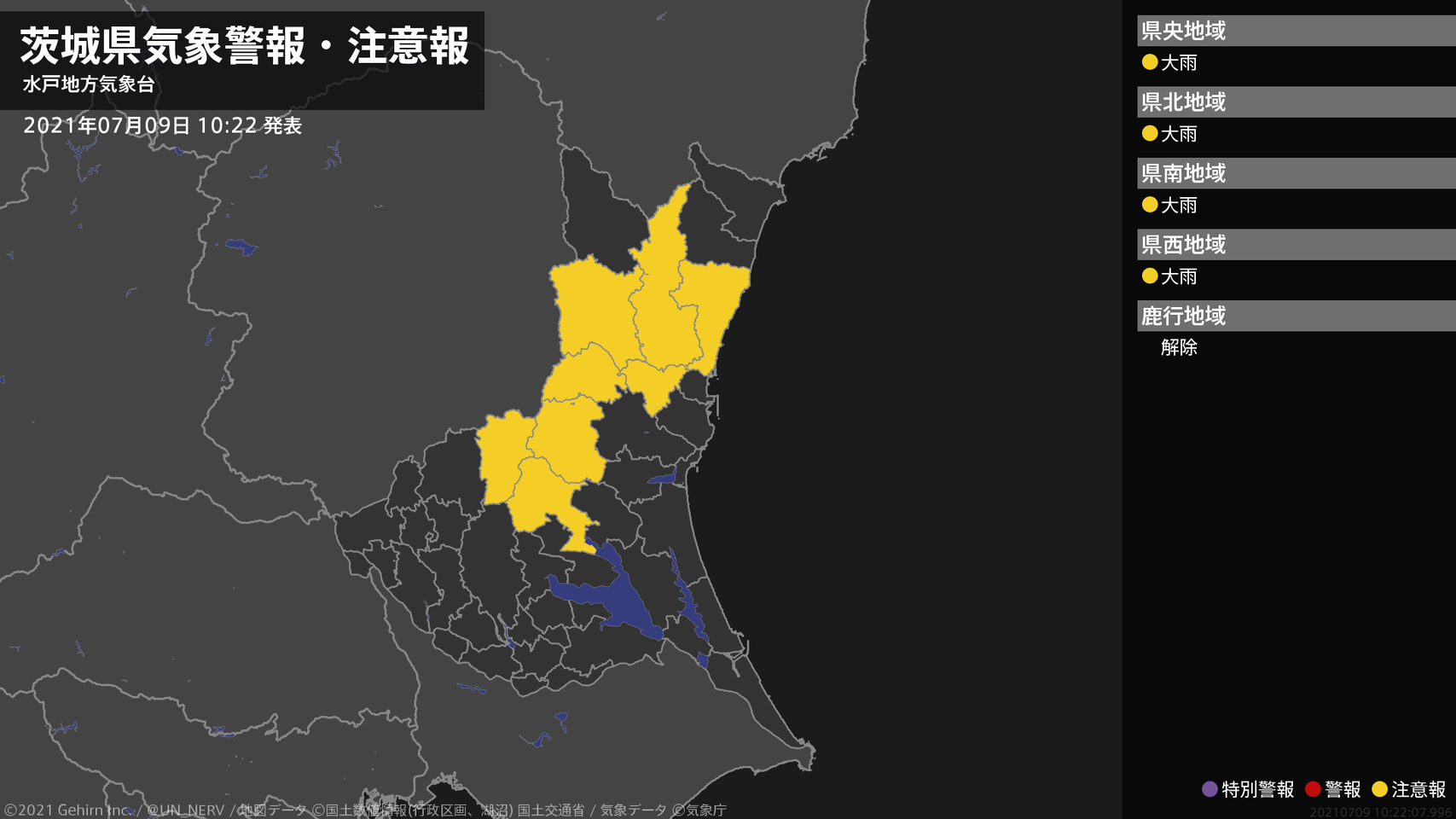 【茨城県 気象警報・注意報 2021年07月09日 22:39】