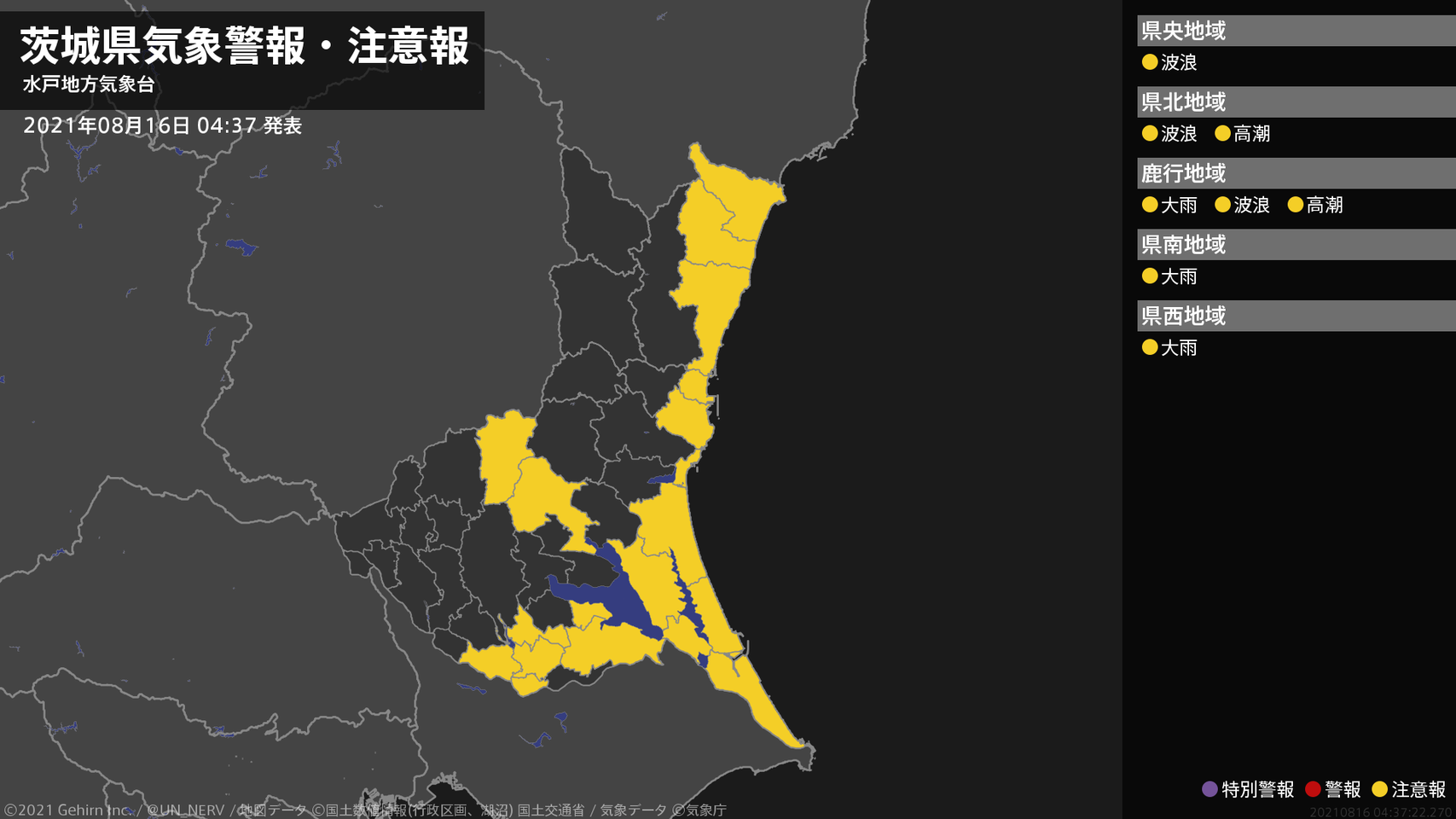 【大雨と雷及び突風に関する全般気象情報 2021年08月16日 04:48】