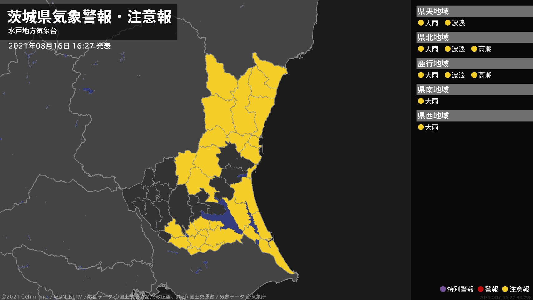 【大雨と雷及び突風に関する全般気象情報 2021年08月16日 16:28】
