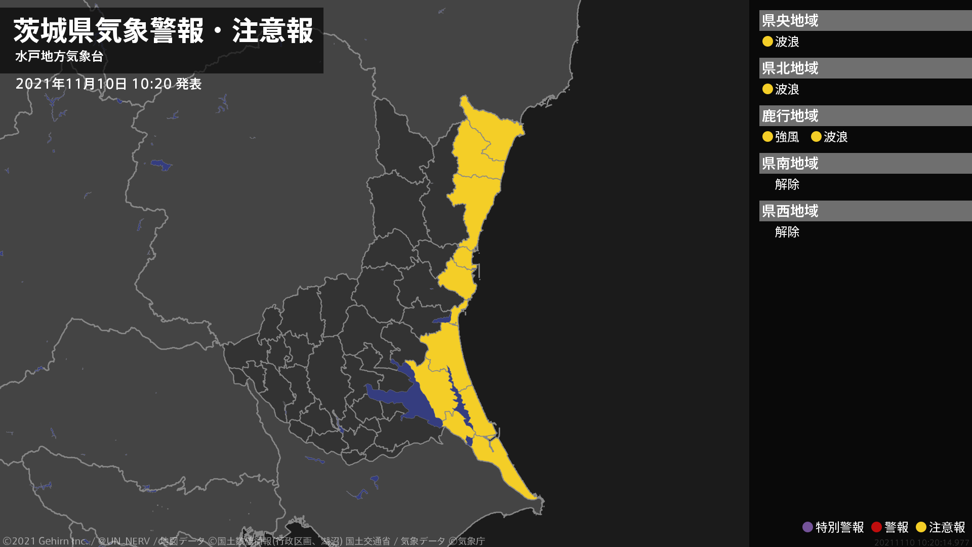 【雷と突風及び降ひょうに関する全般気象情報 2021年11月10日 16:15】
