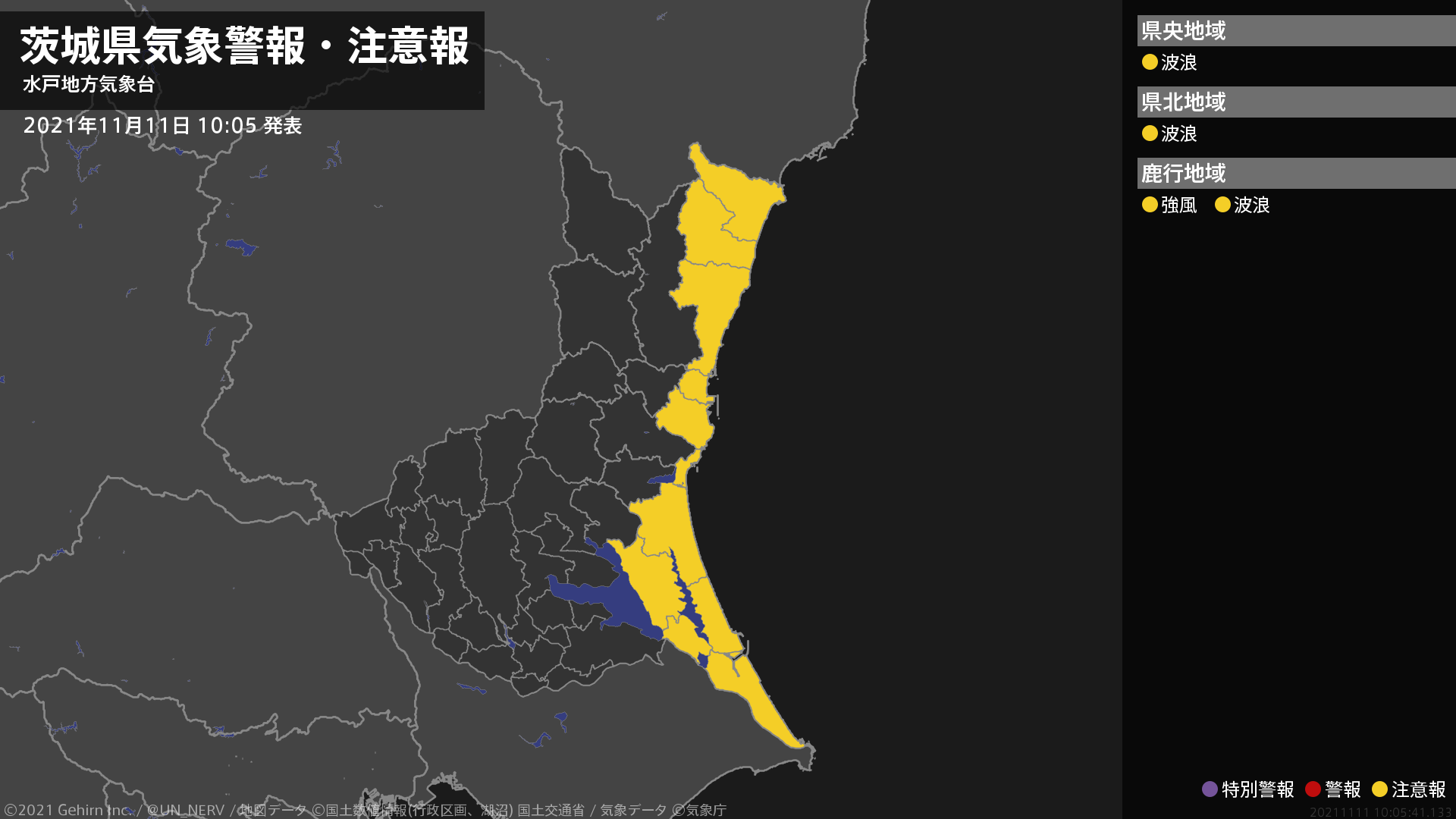 【雷と突風及び降ひょうに関する全般気象情報 2021年11月11日 04:35】