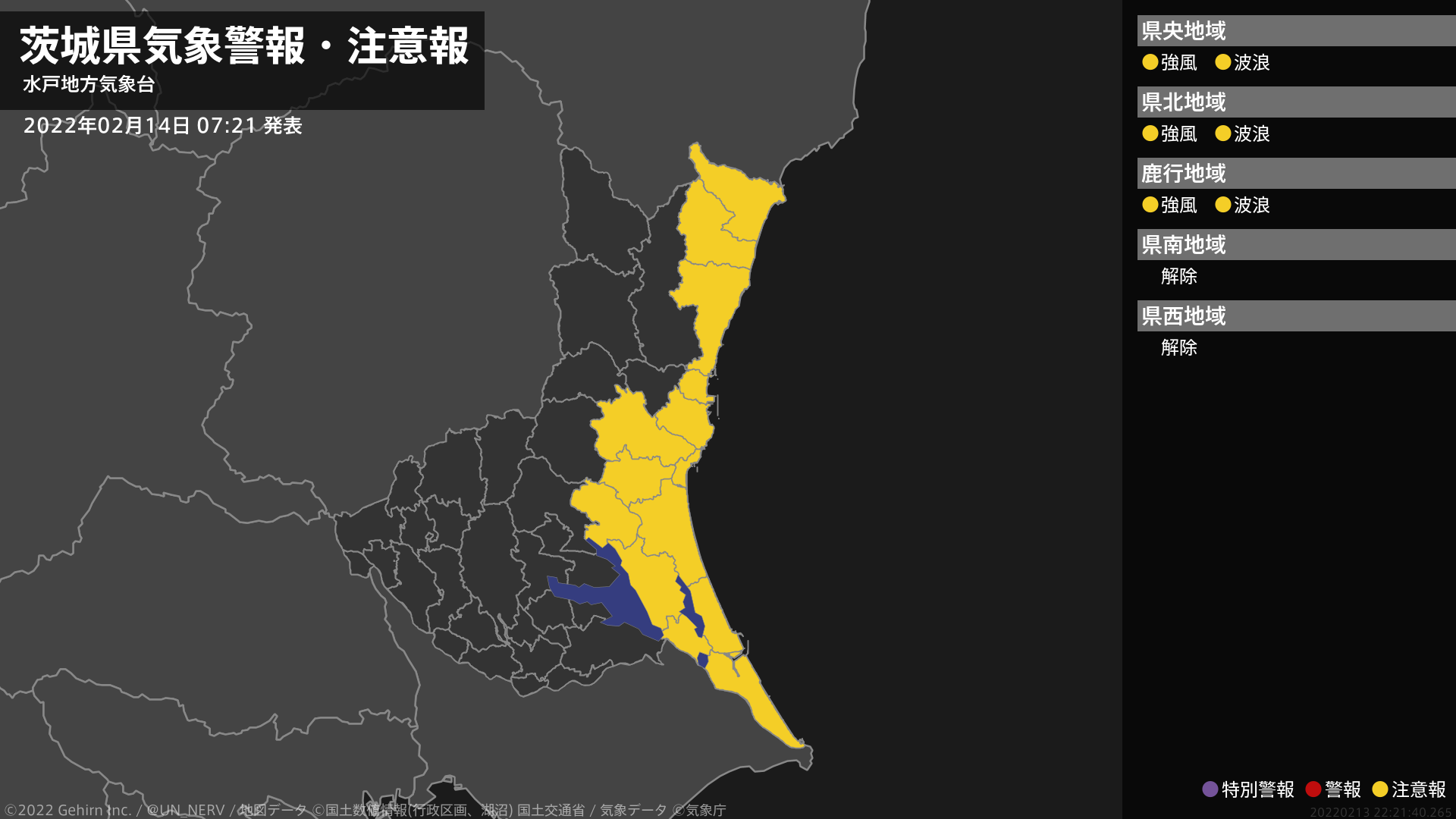 【強い寒気と発達する低気圧に関する全般気象情報 2022年02月14日 17:28】