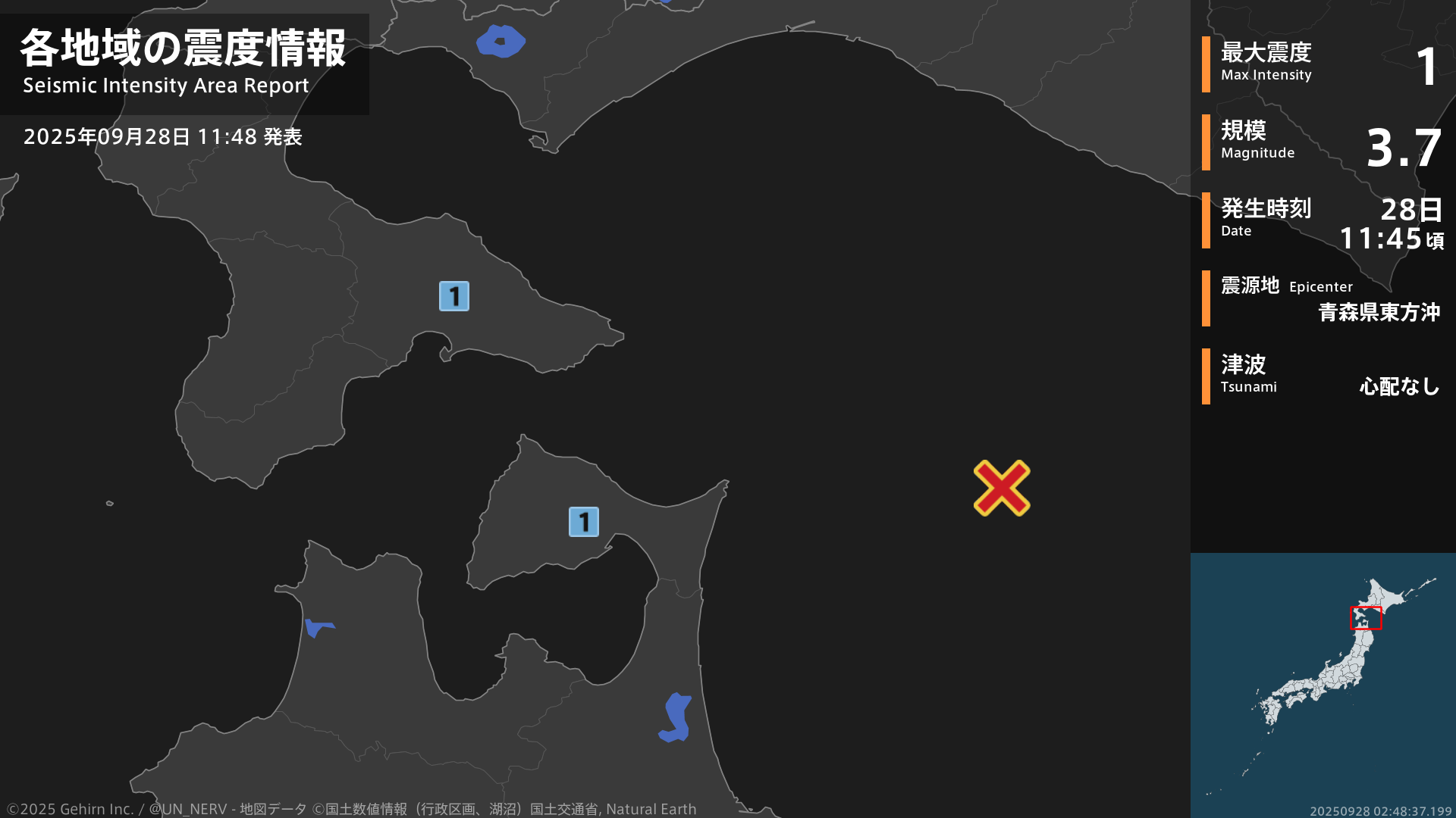 【地震情報 2025年9月28日】