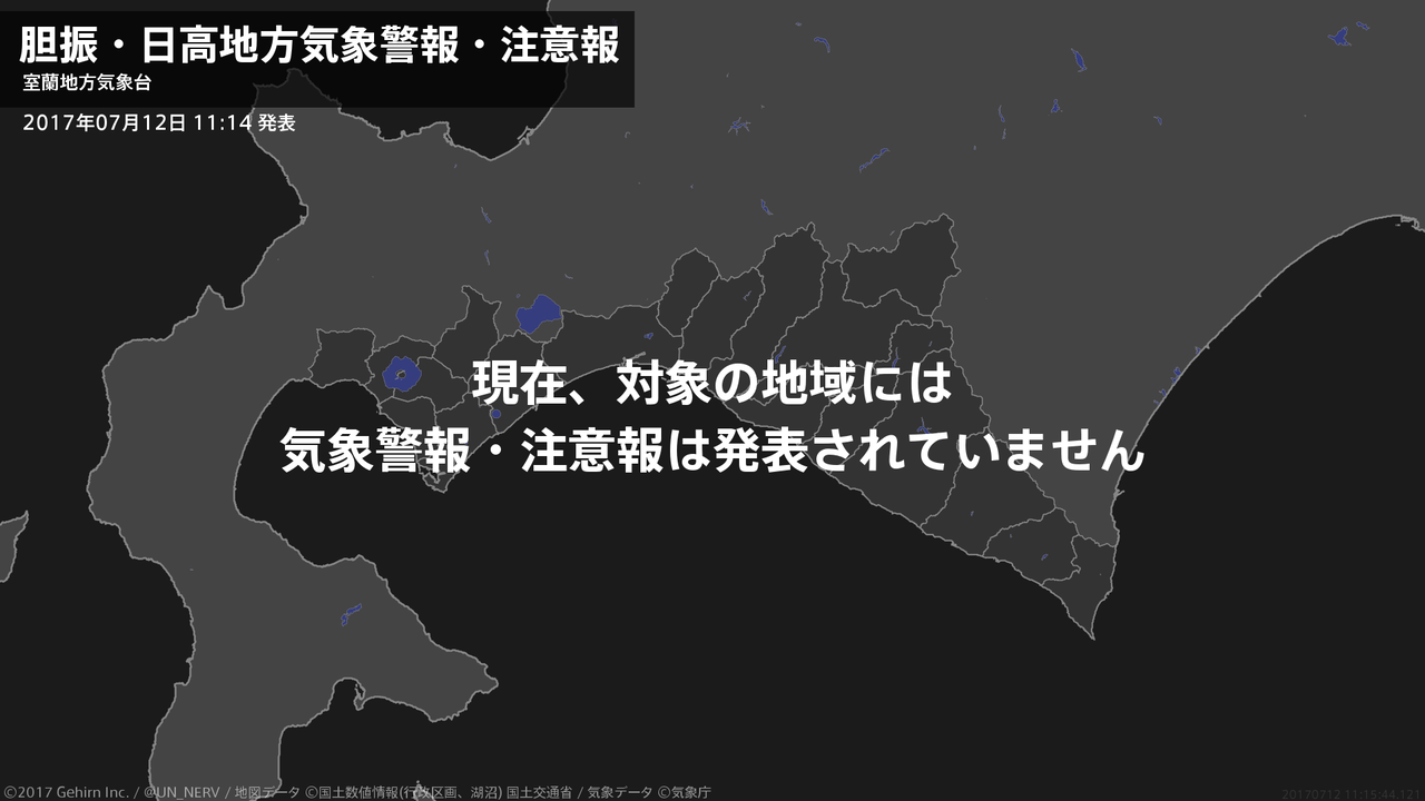 【胆振・日高地方 気象警報・注意報 2017年07月12日 11:15】