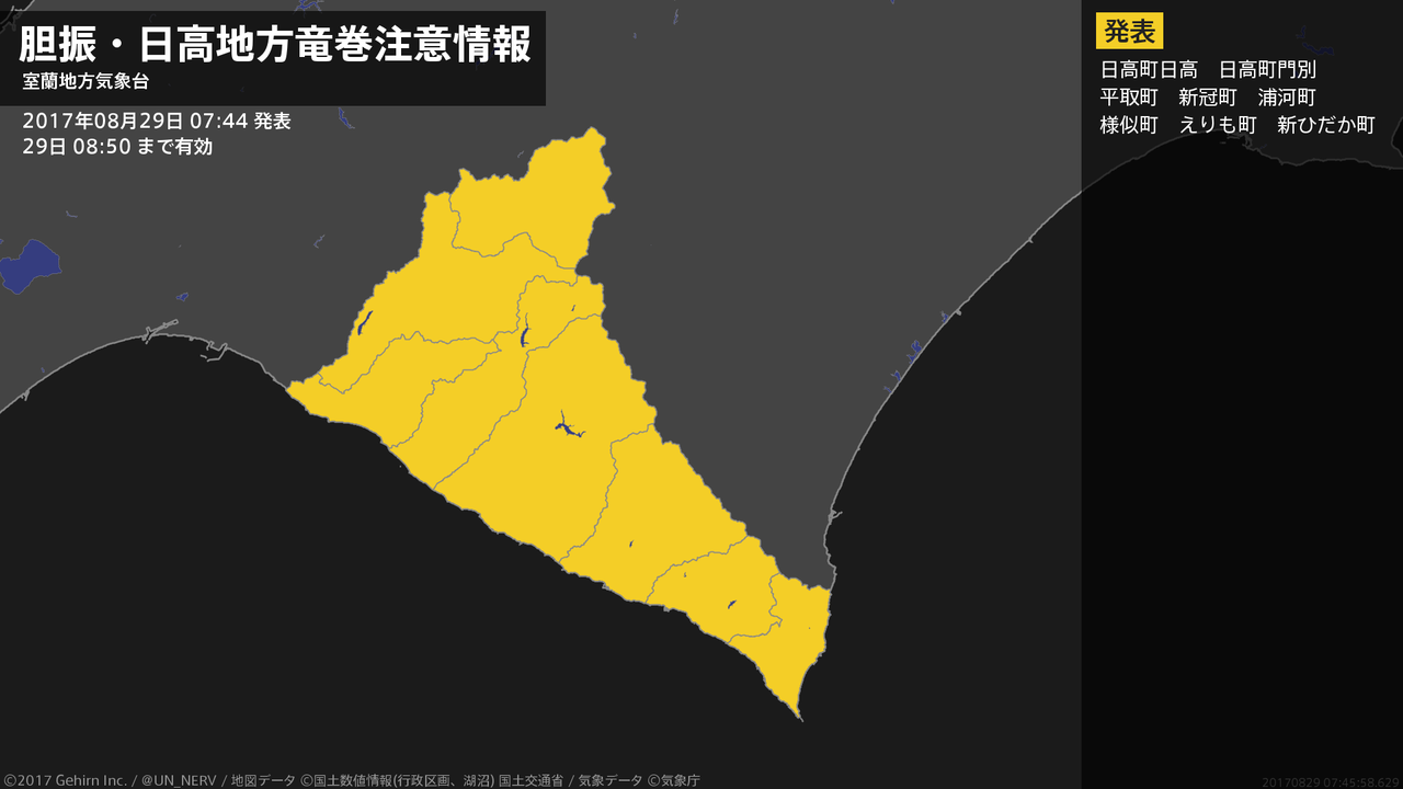 【胆振・日高地方 気象警報・注意報 2017年08月29日 22:27】