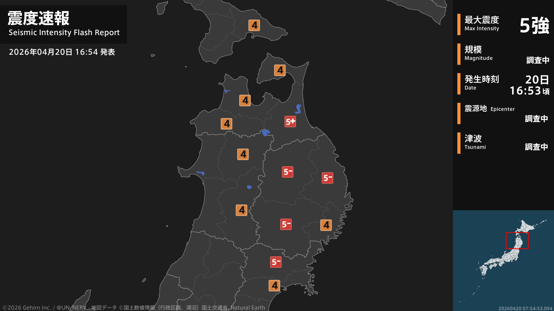 [震度4]岩手沿岸南部、岩手内陸南部、宮城北部