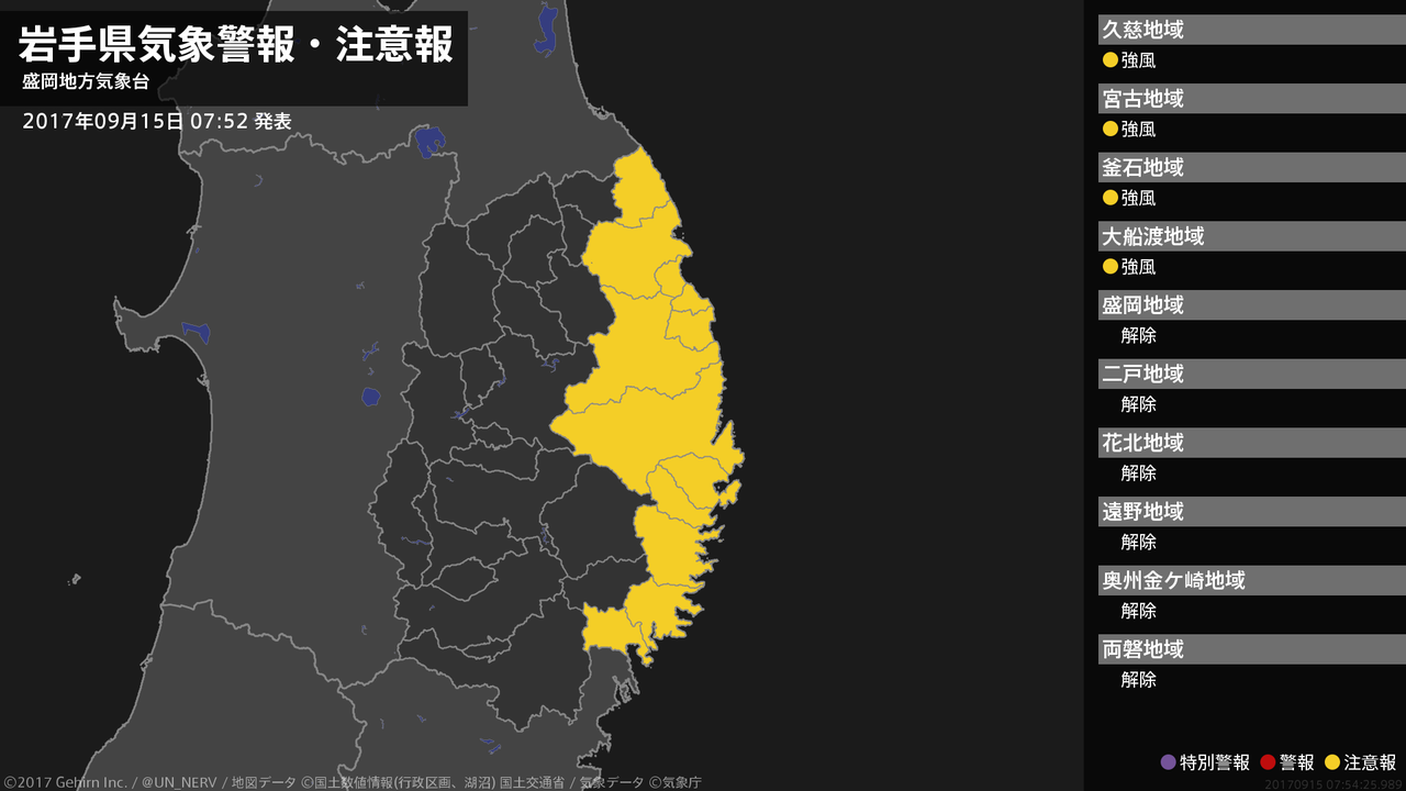 【岩手県 気象警報・注意報 2017年09月15日 07:54】