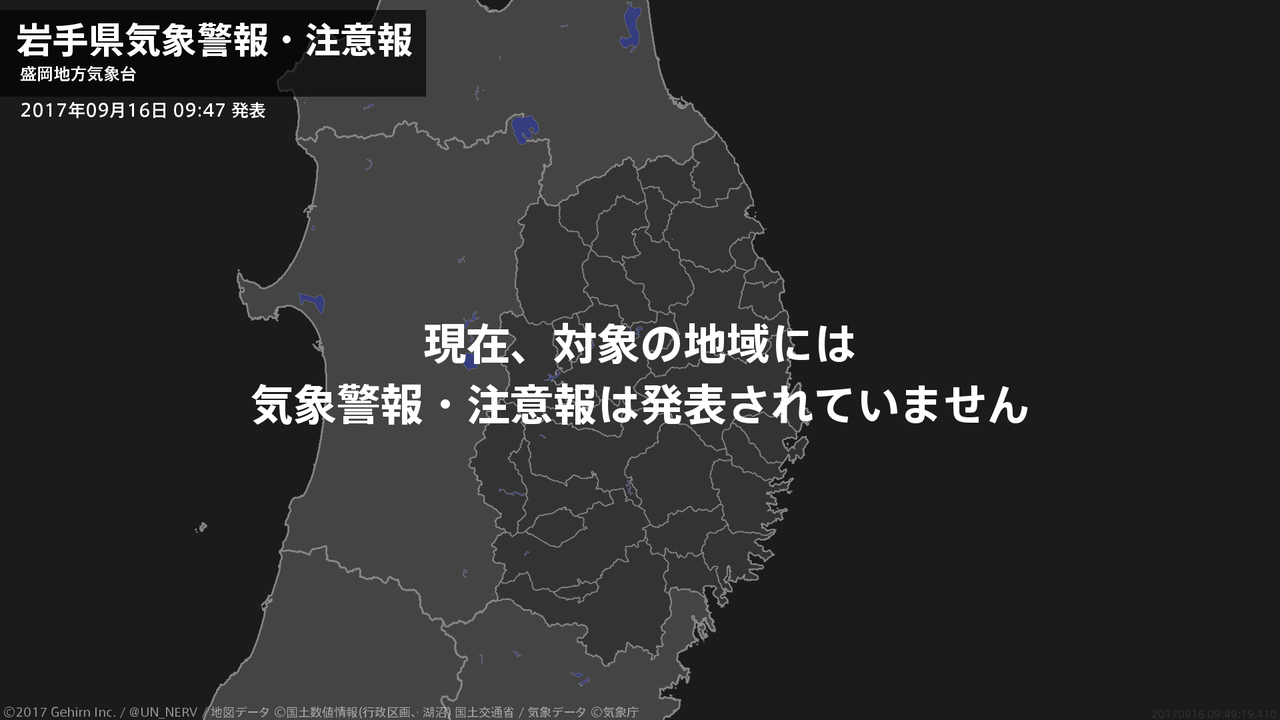 【岩手県 気象警報・注意報 2017年09月16日 09:49】