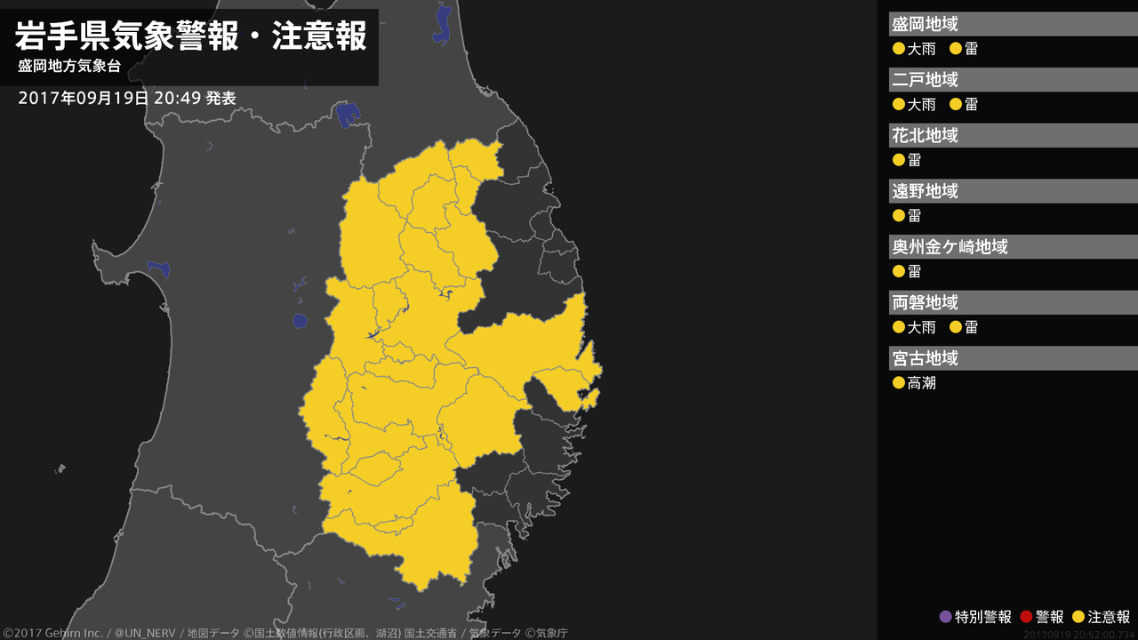 【大雨と雷及び突風に関する全般気象情報 2017年09月19日 16:33】