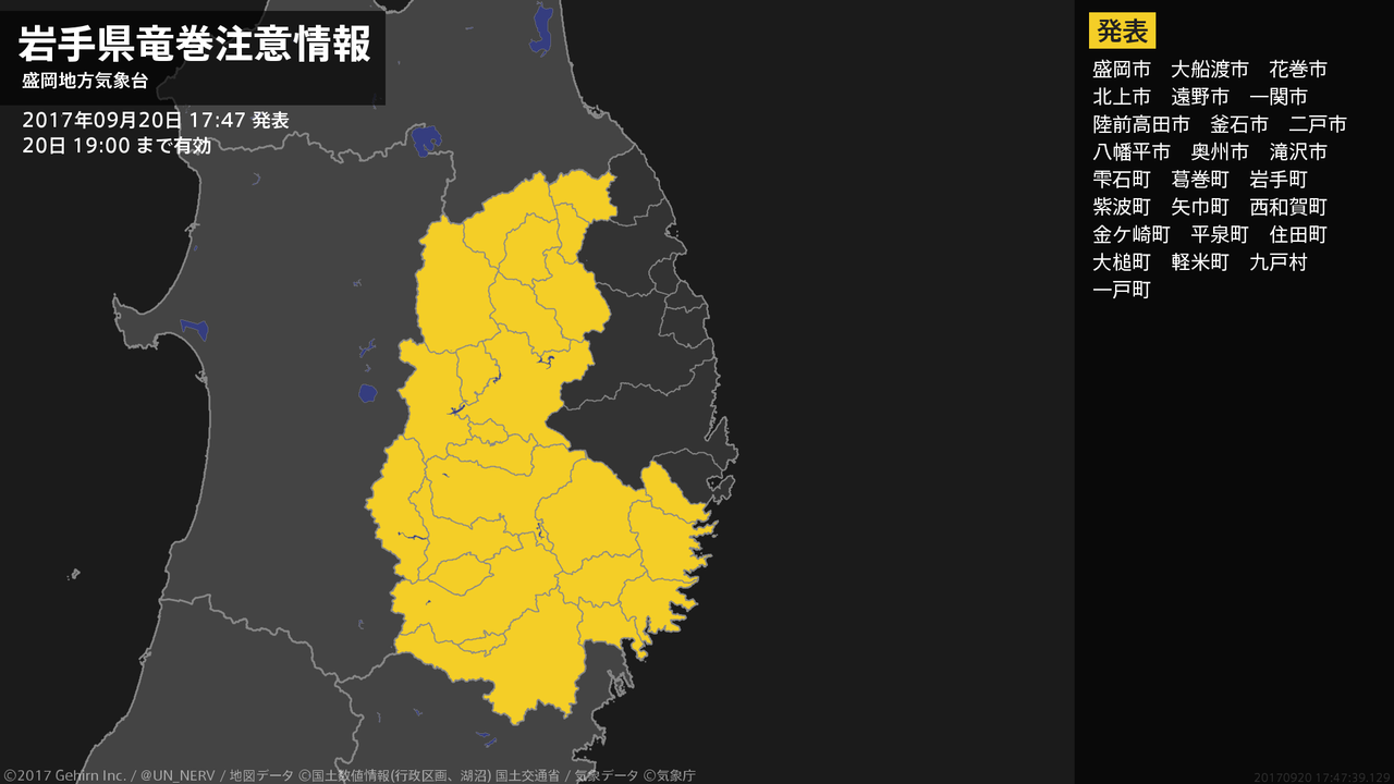 【大雨と雷及び突風に関する全般気象情報 2017年09月20日 16:19】