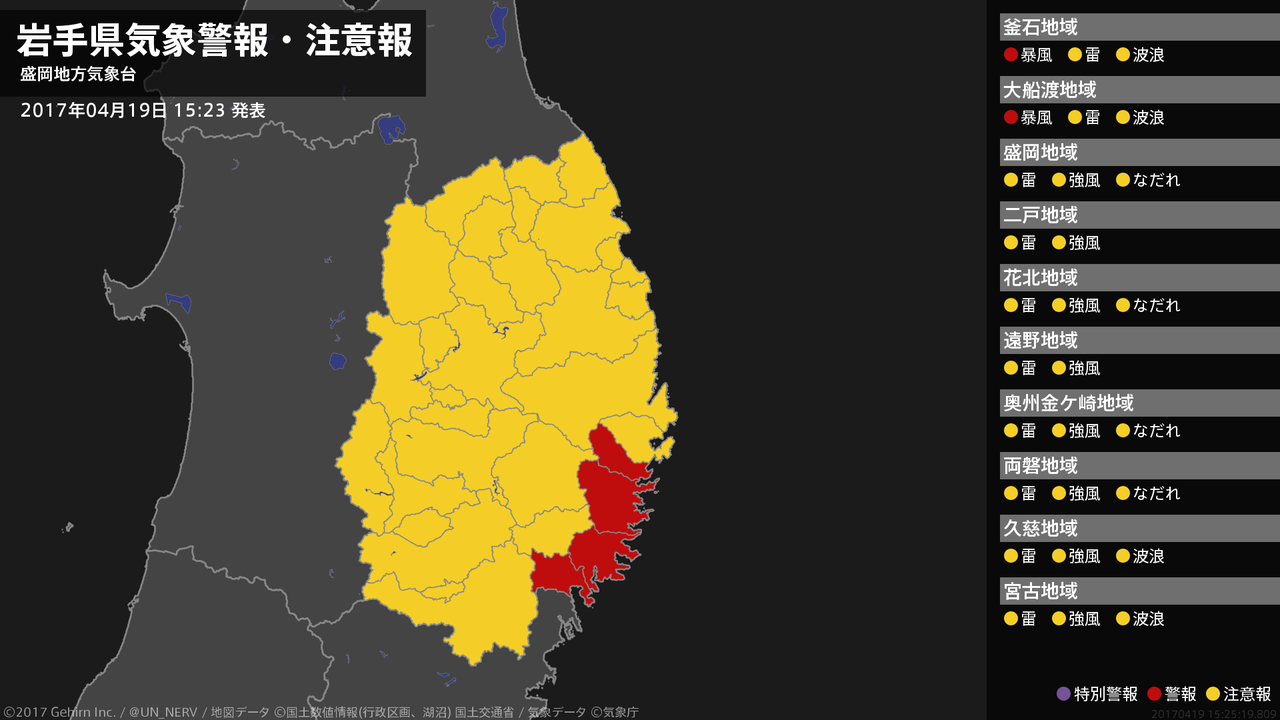 【岩手県 気象警報(解除) 2017年04月19日 23:45】