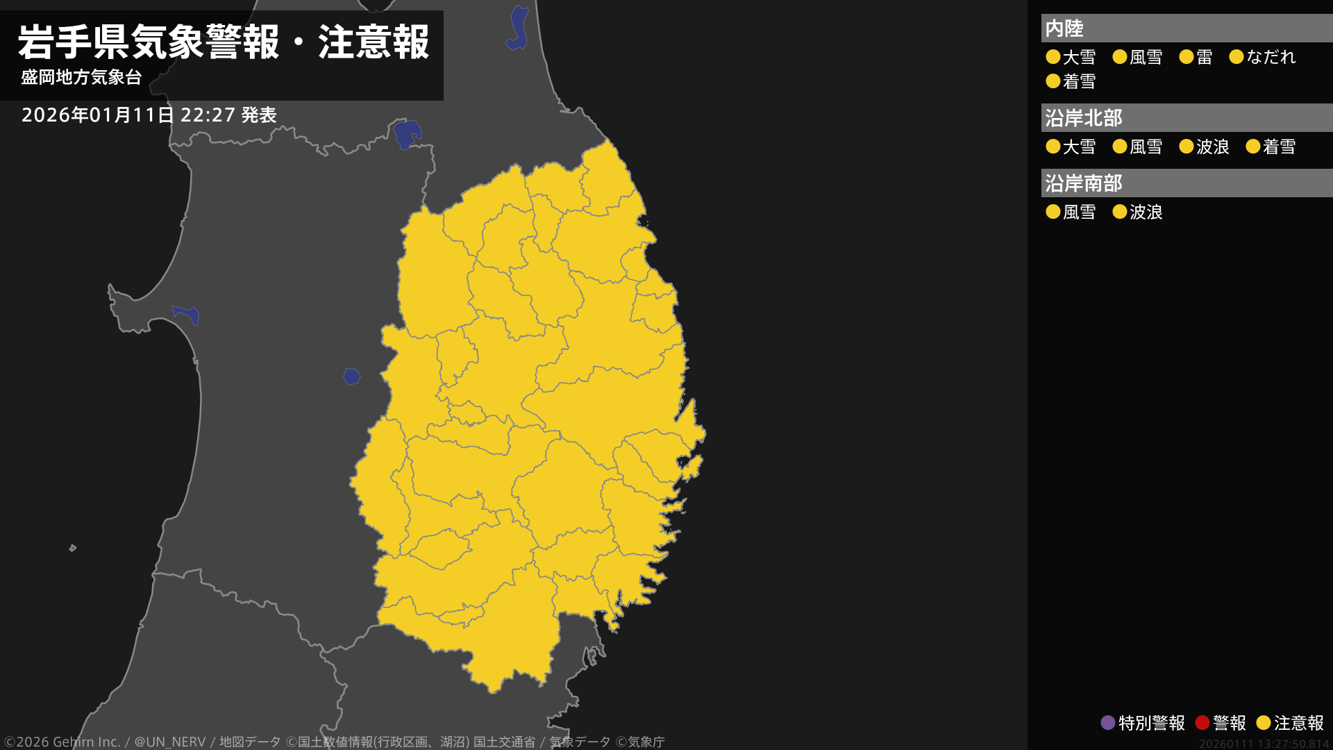 【暴風雪と高波及び大雪に関する全般気象情報 2026年01月11日 17:29】