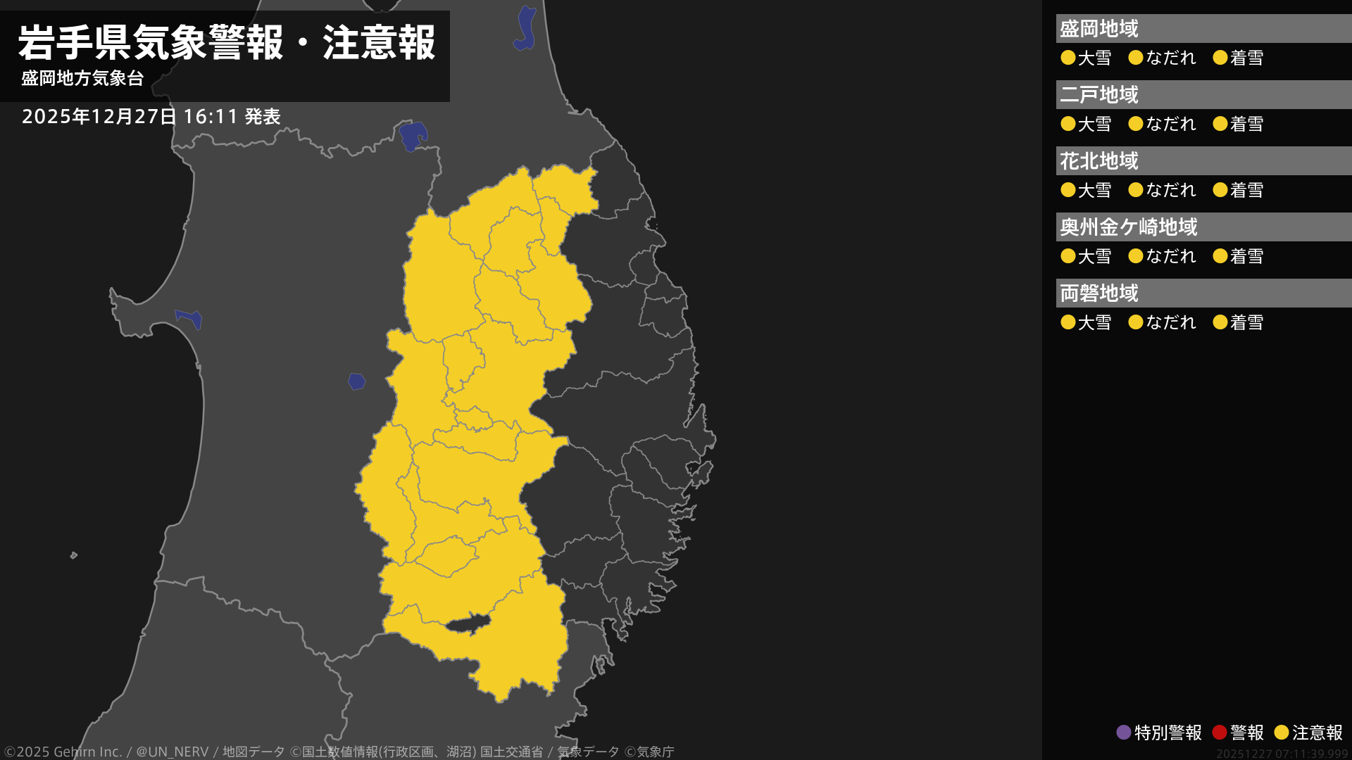 【暴風雪と高波及び大雪に関する全般気象情報 2025年12月26日 16:22】