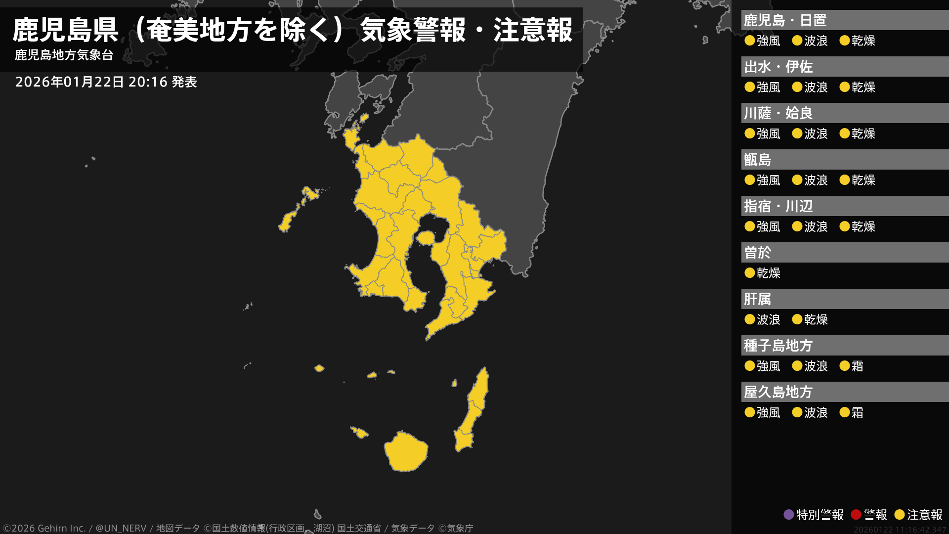 鹿児島県(奄美地方除く)の情報を配信します。