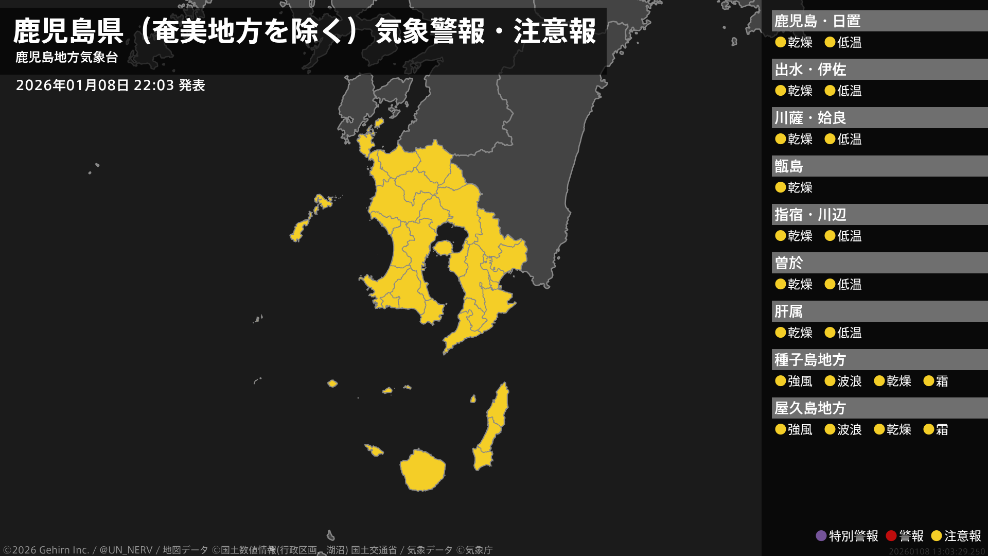 鹿児島県(奄美地方除く)の情報を配信します。