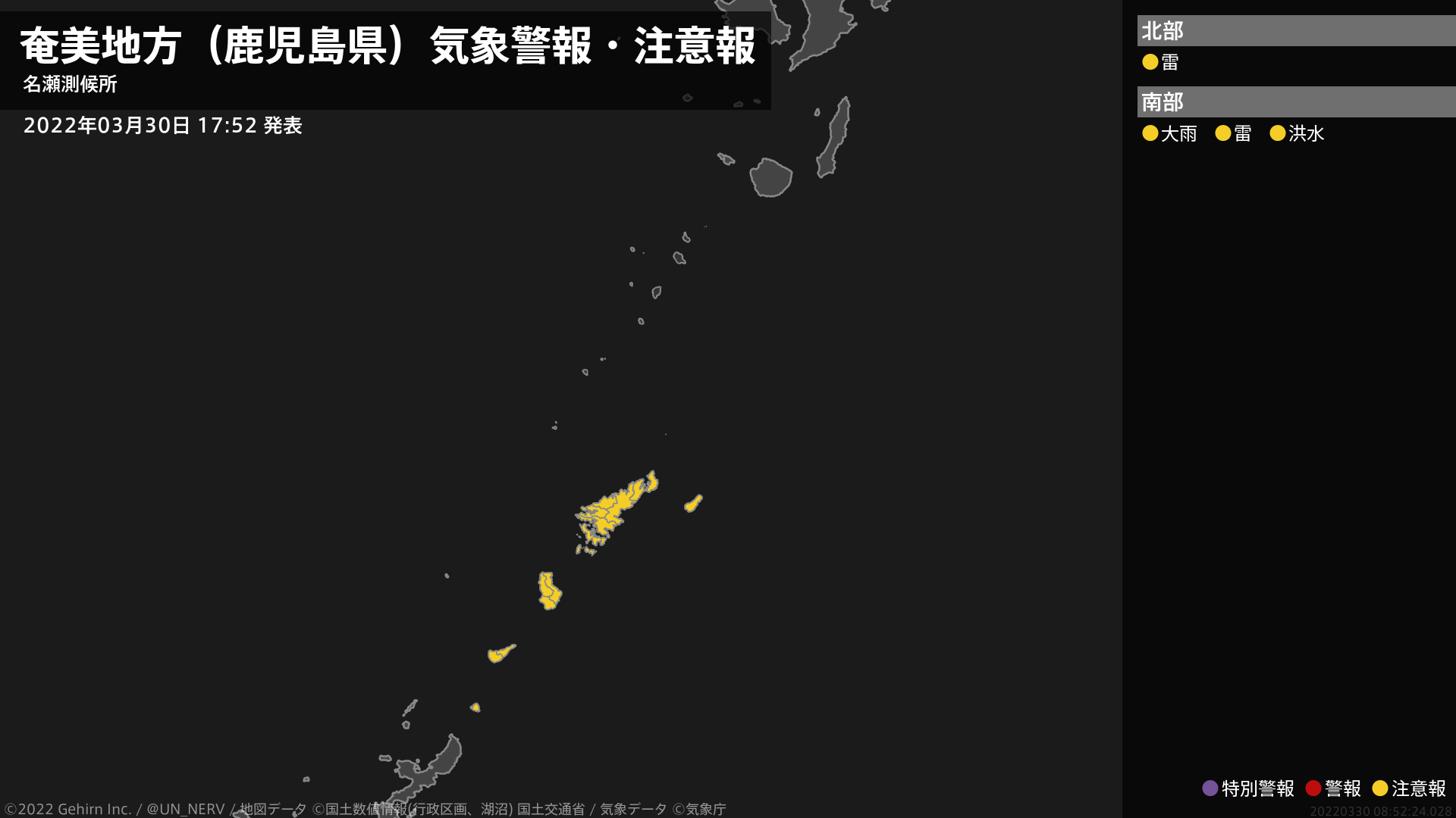 【奄美地方(鹿児島県) 気象警報・注意報 2022年03月30日 17:52】