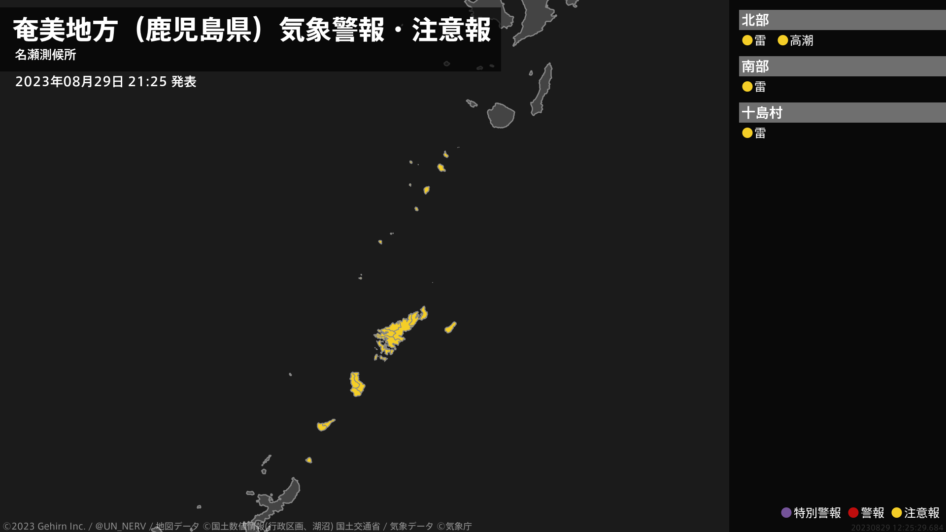 【奄美地方(鹿児島県) 気象警報・注意報 2023年08月29日 21:25】
