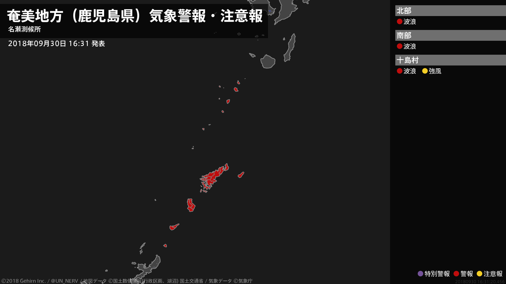 【奄美地方(鹿児島県) 気象警報・注意報 2018年09月30日 16:31】