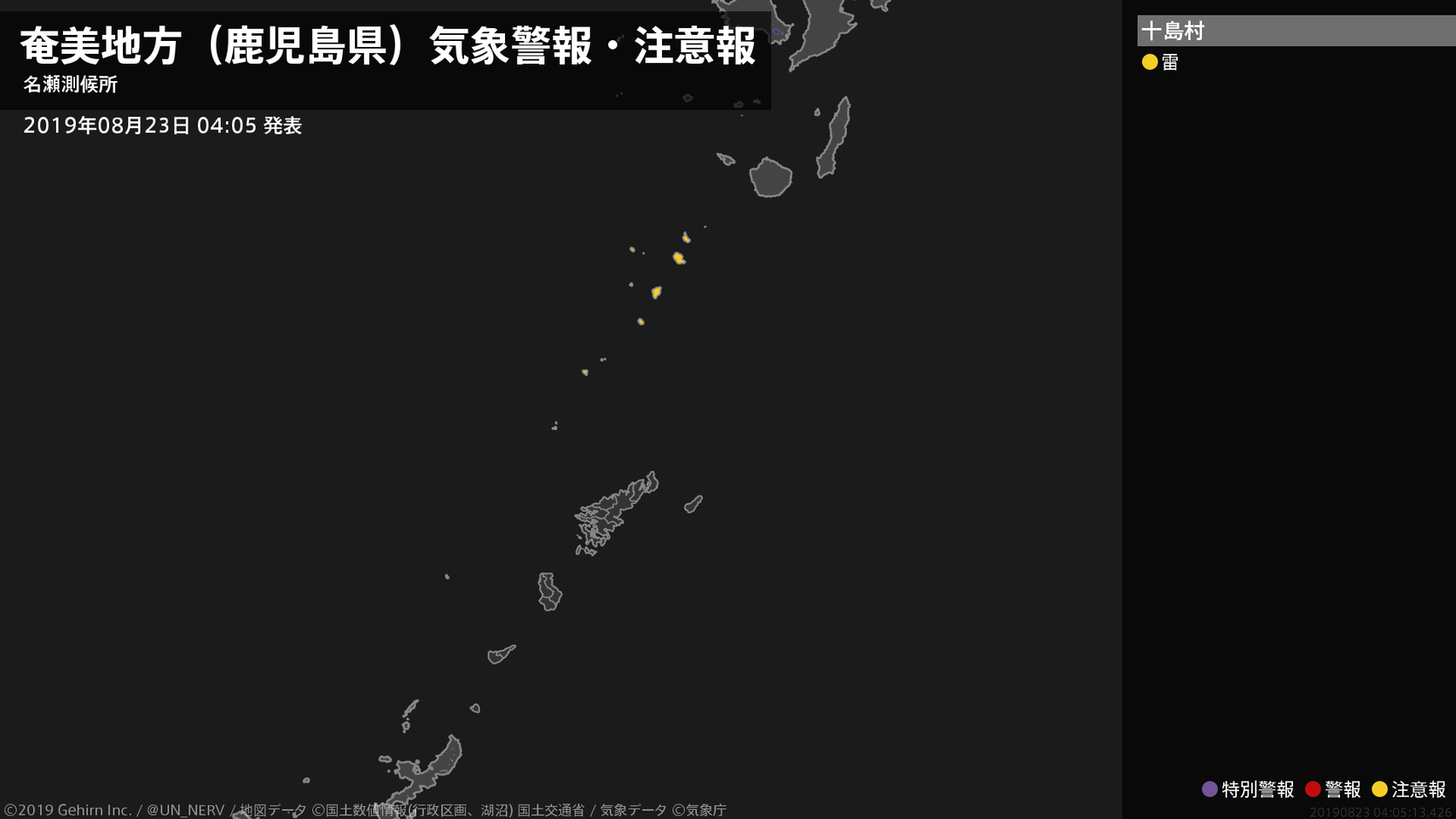 【奄美地方(鹿児島県) 気象警報・注意報 2019年08月23日 04:05】