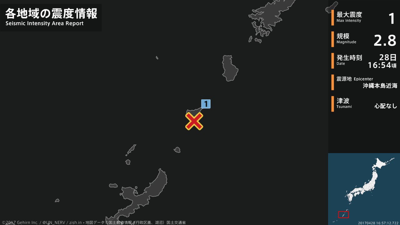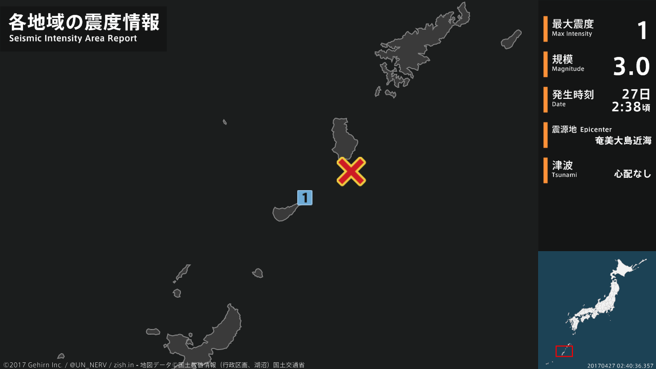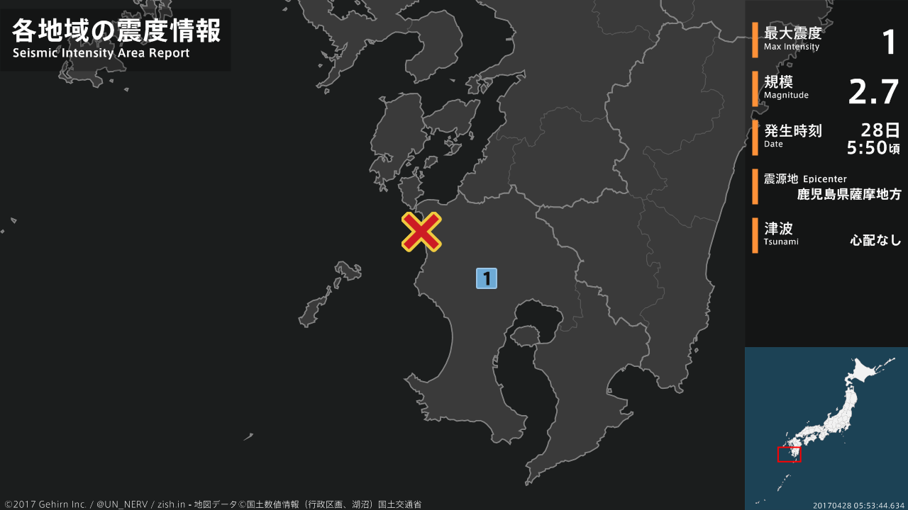 【震度・震源速報 2017年4月29日】