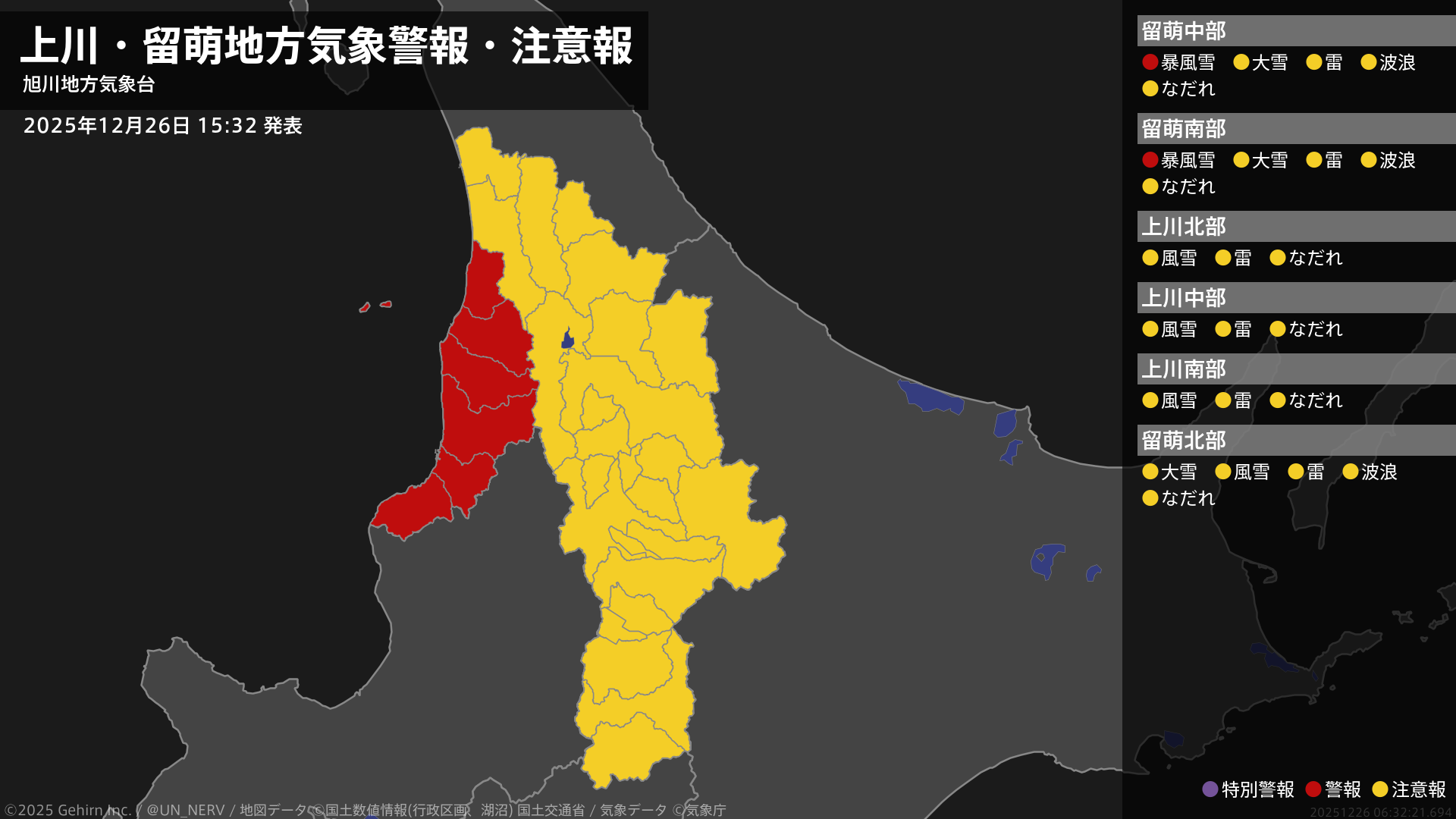 【暴風雪と高波及び大雪に関する全般気象情報 2025年12月26日 16:22】