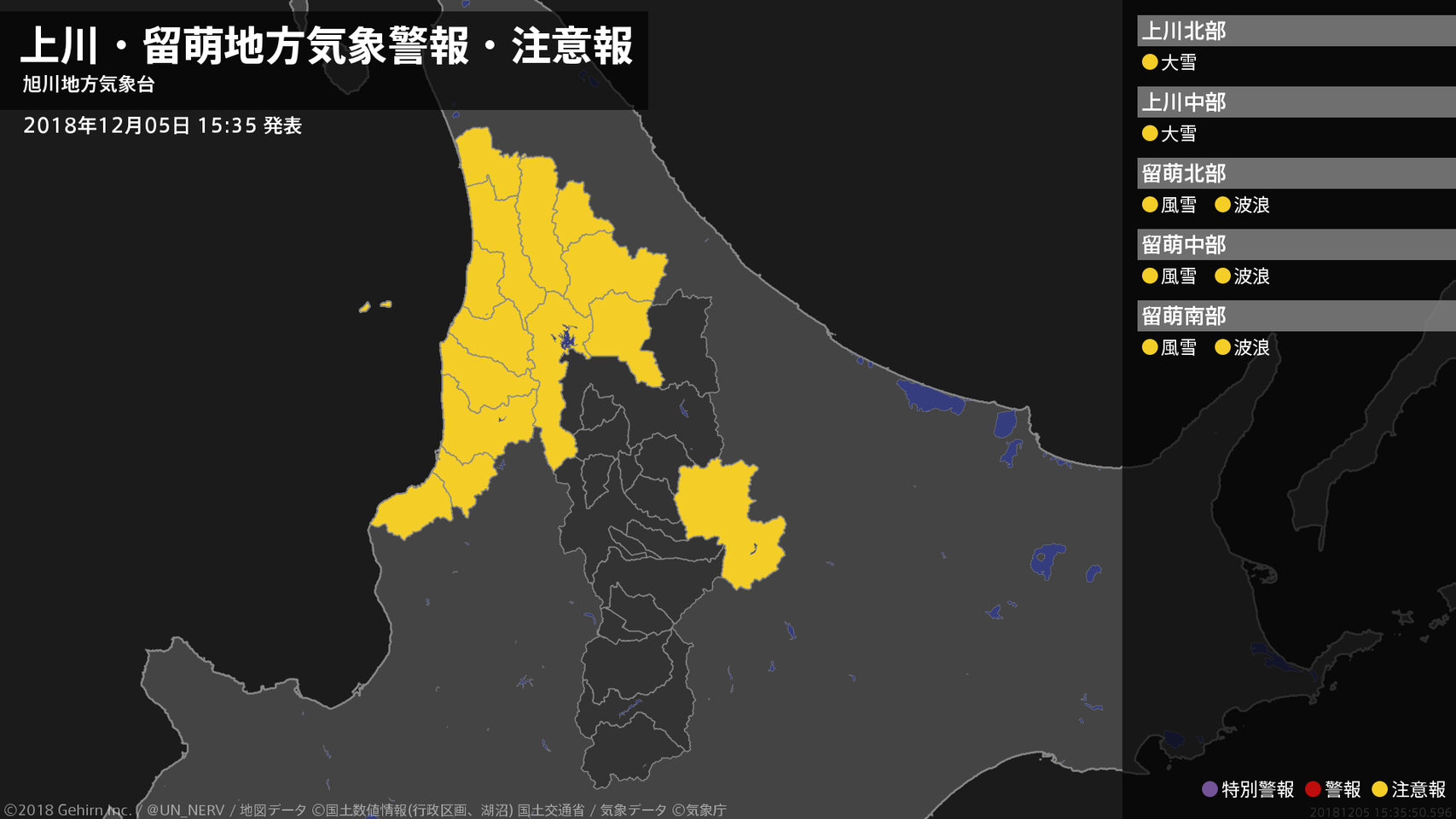 【上川・留萌地方 気象警報・注意報 2018年12月05日 15:35】