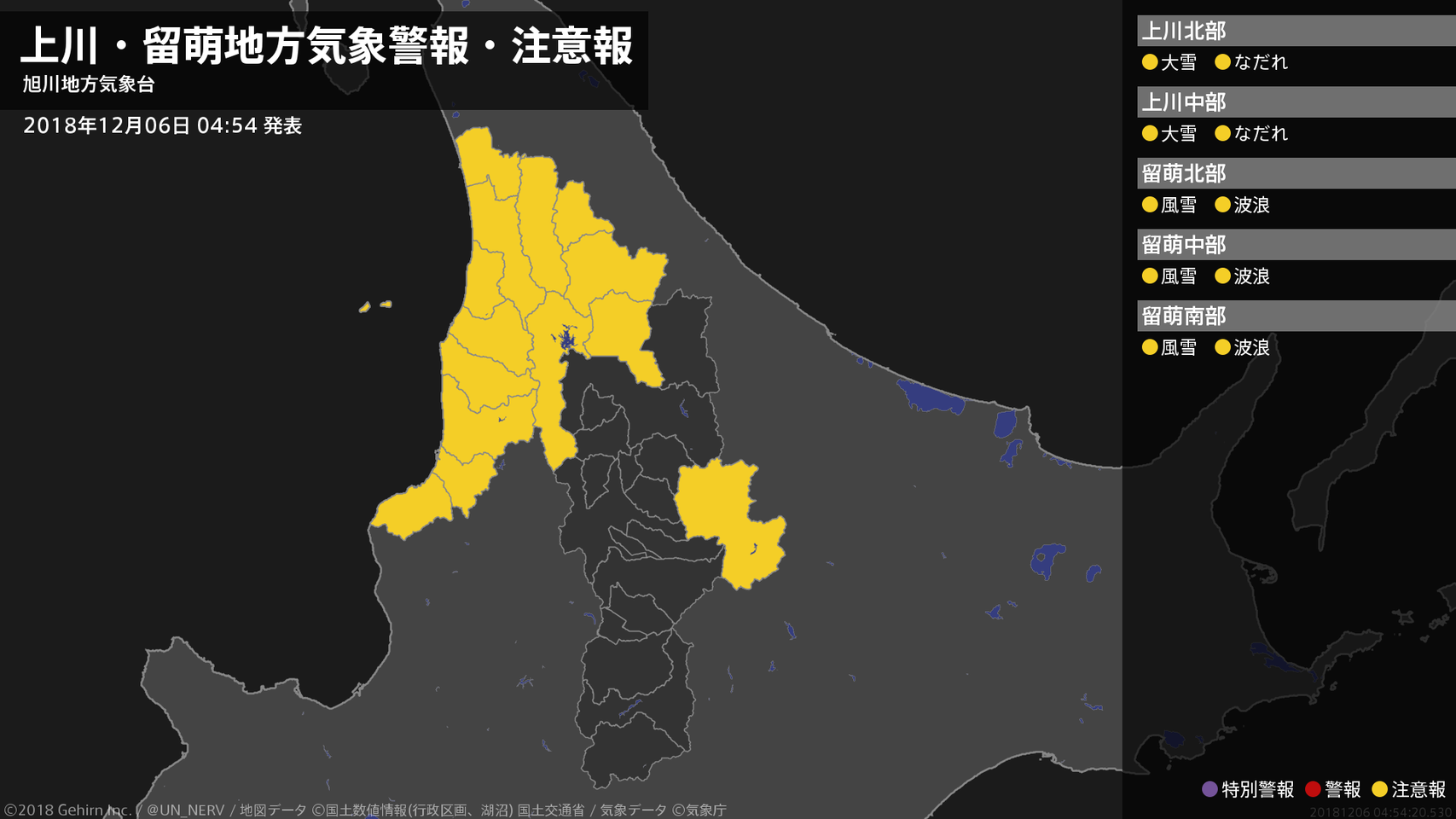 【上川・留萌地方 気象警報・注意報 2018年12月06日 04:54】