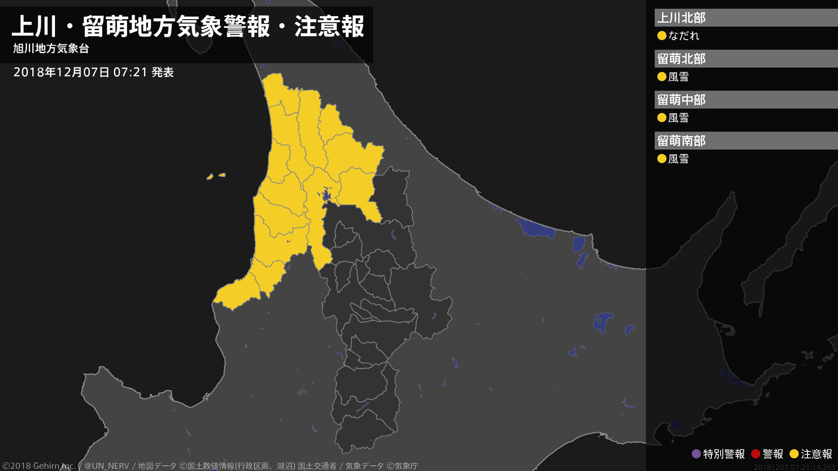 【上川・留萌地方 気象警報・注意報 2018年12月07日 07:21】