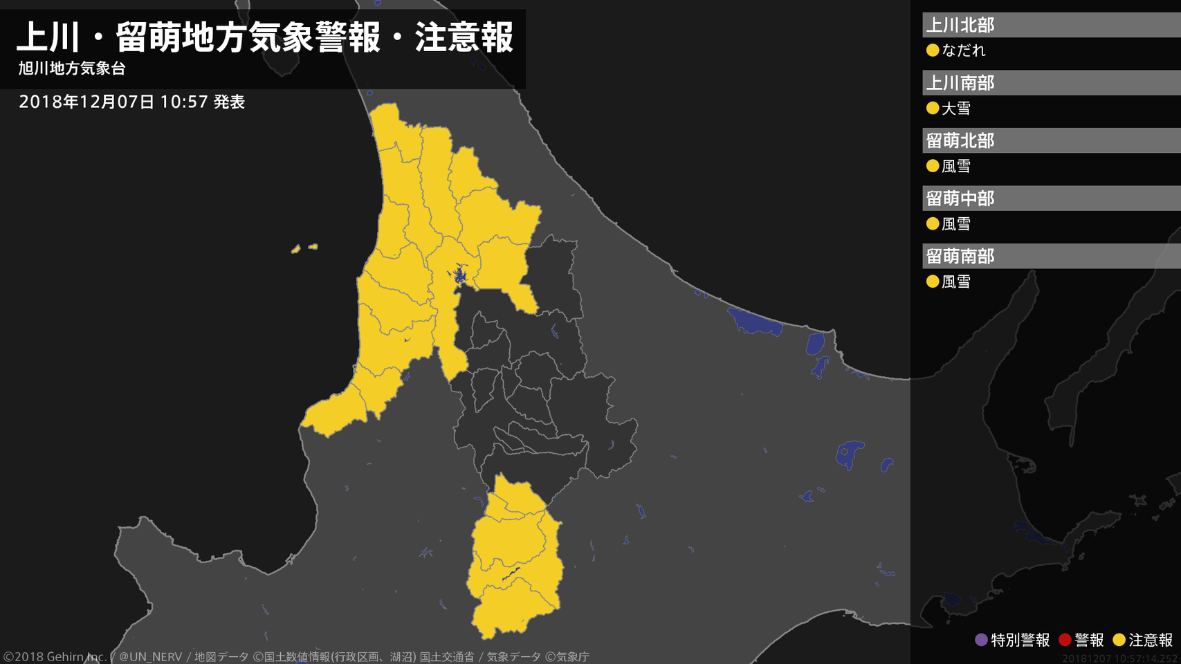 【上川・留萌地方 気象警報・注意報 2018年12月07日 10:57】