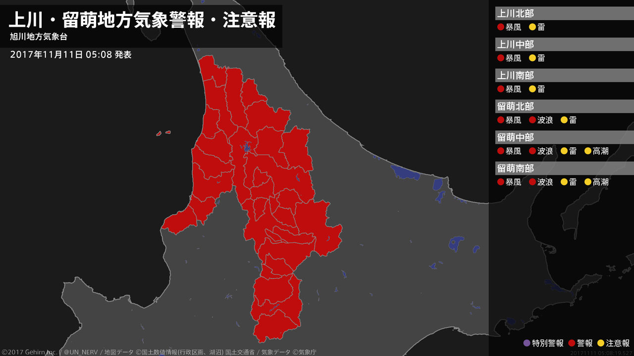 【暴風と高波に関する全般気象情報 2017年11月11日 05:02】