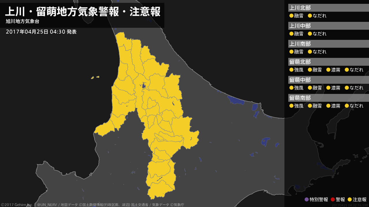 【上川・留萌地方 気象警報・注意報 2017年04月25日 04:32】