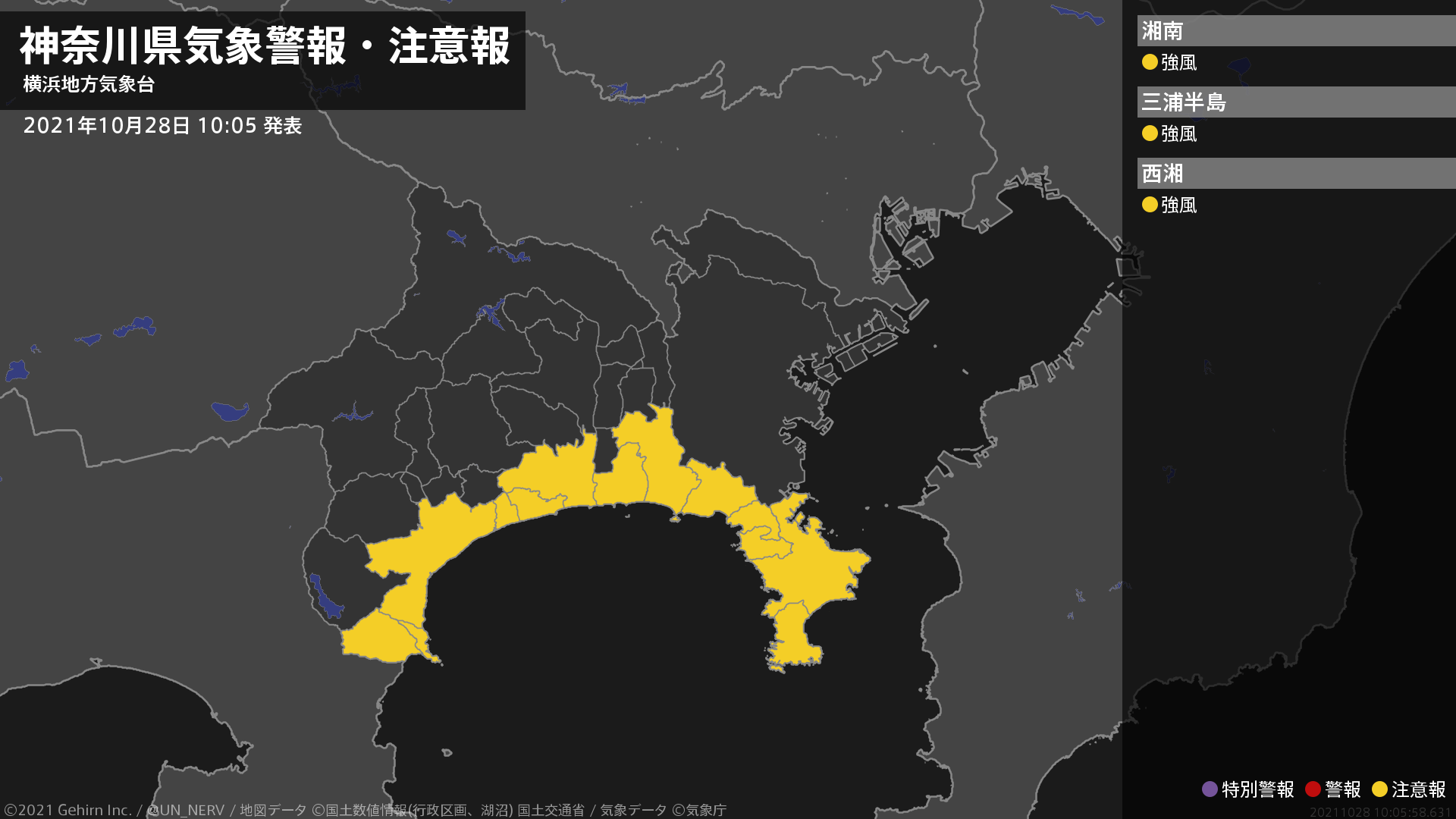 【神奈川県 気象警報・注意報 2021年10月28日 10:05】