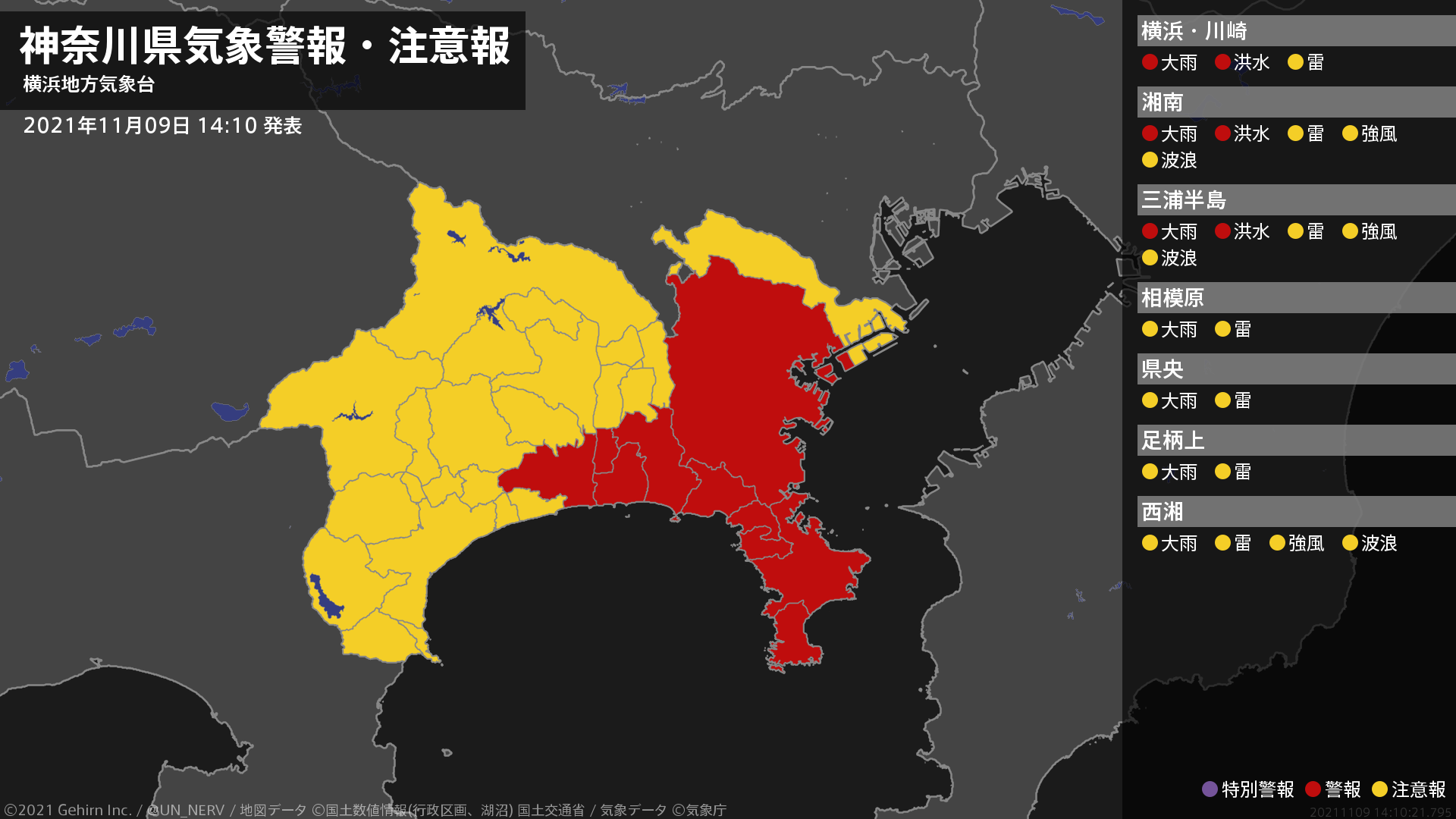【雷と突風及び降ひょうに関する全般気象情報 2021年11月10日 16:15】