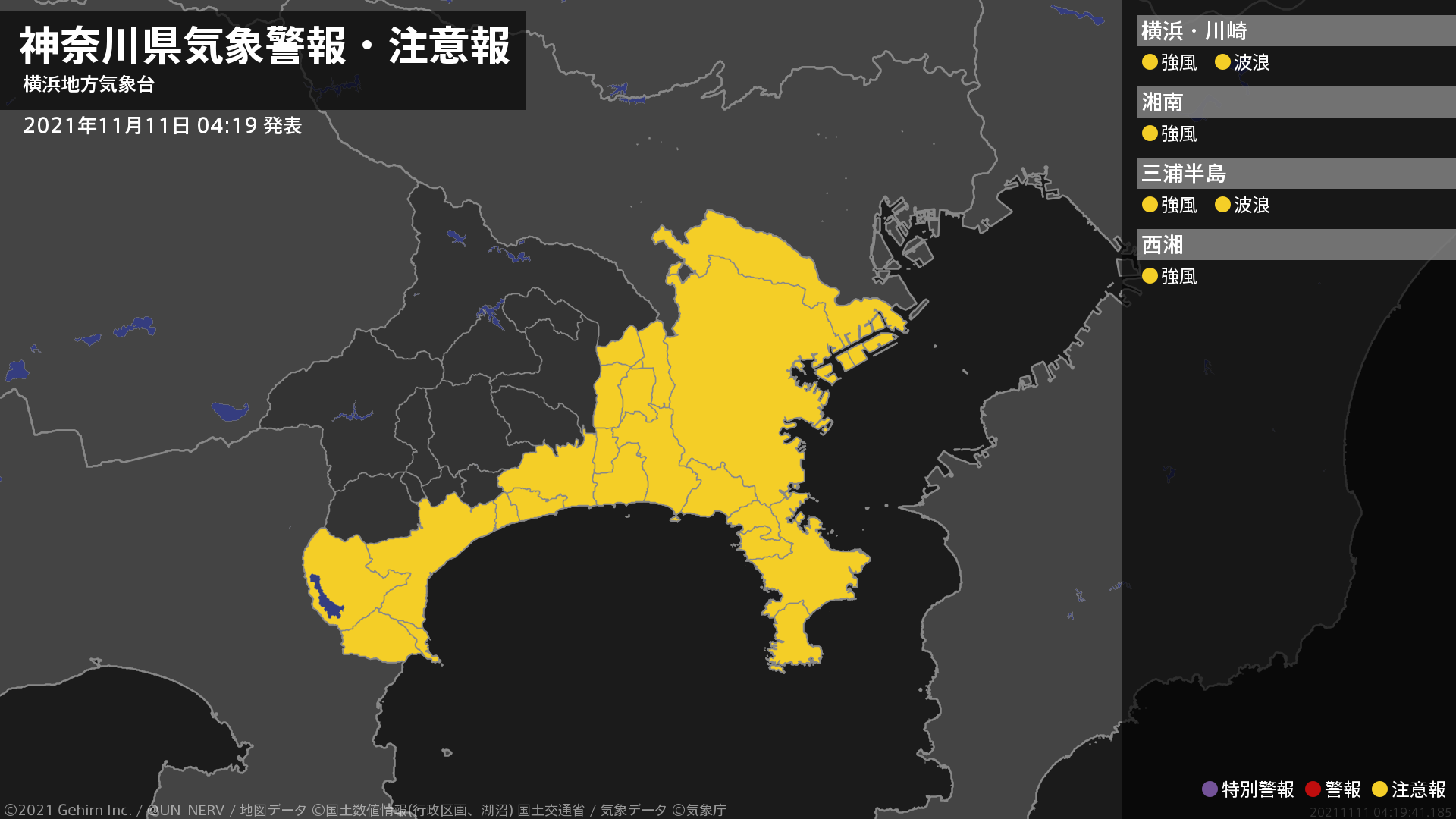 【雷と突風及び降ひょうに関する全般気象情報 2021年11月11日 04:35】