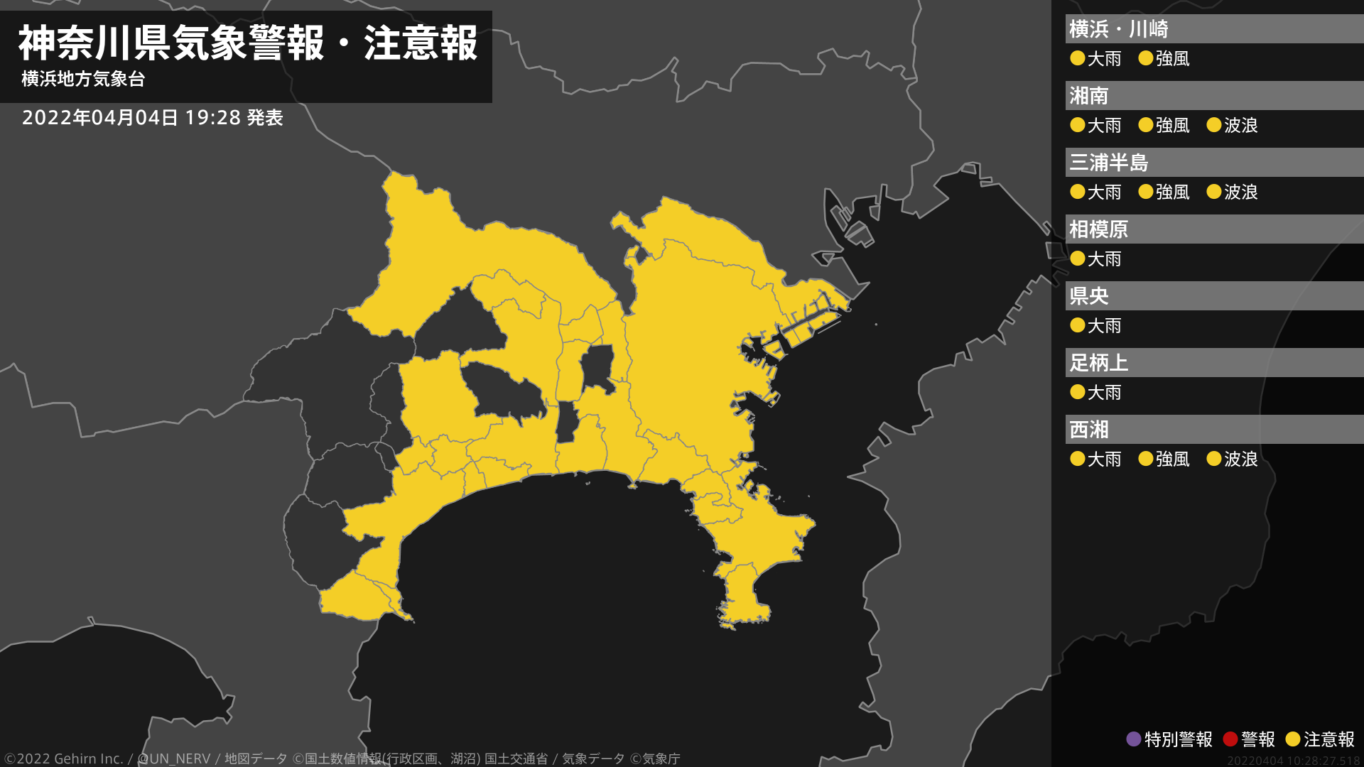 【神奈川県 気象警報・注意報 2022年04月04日 19:28】