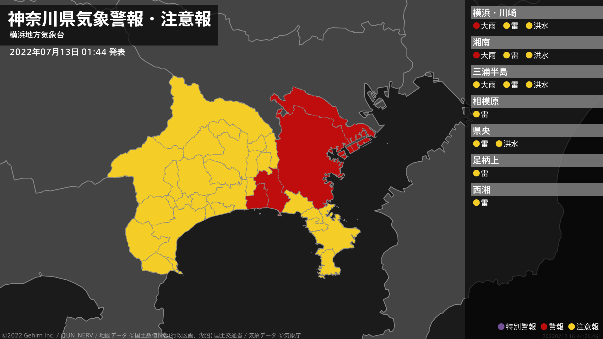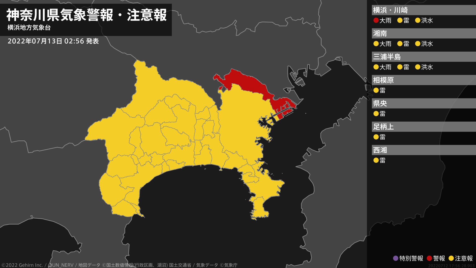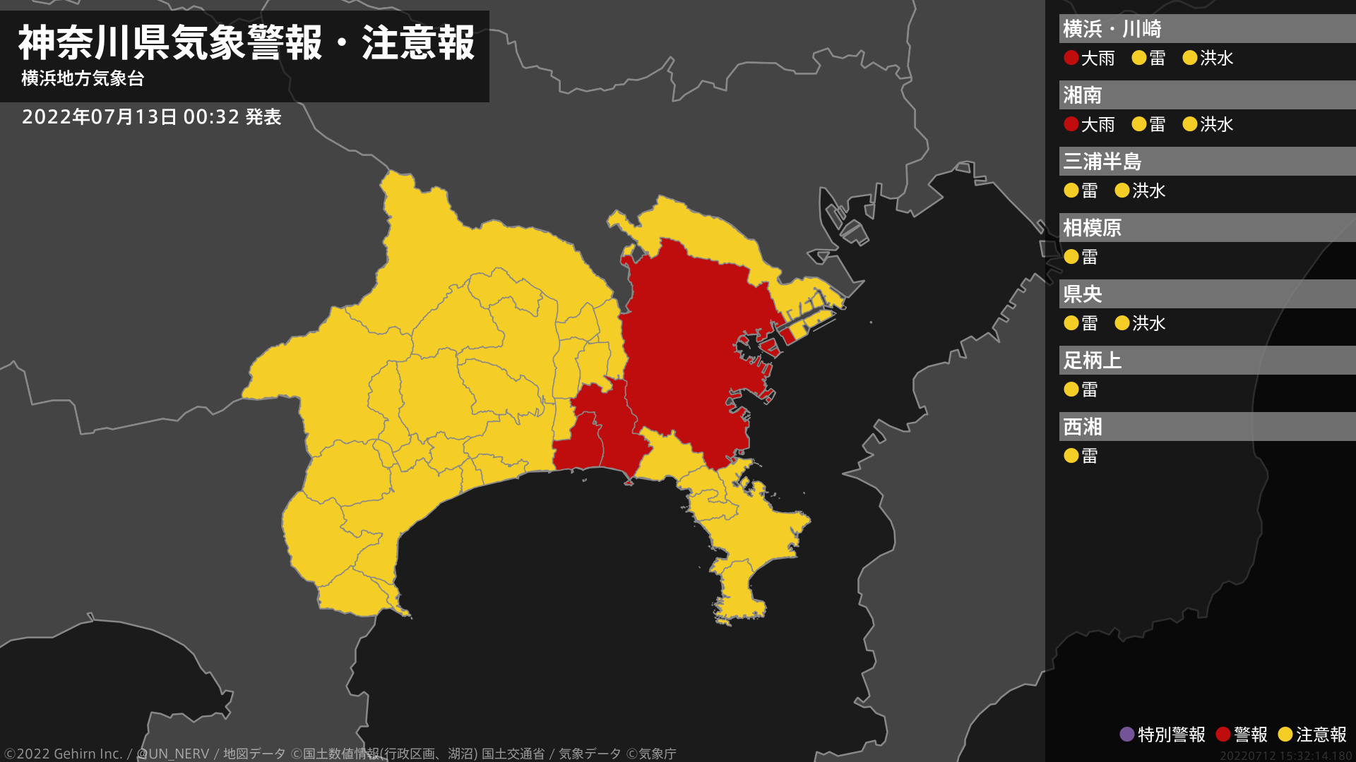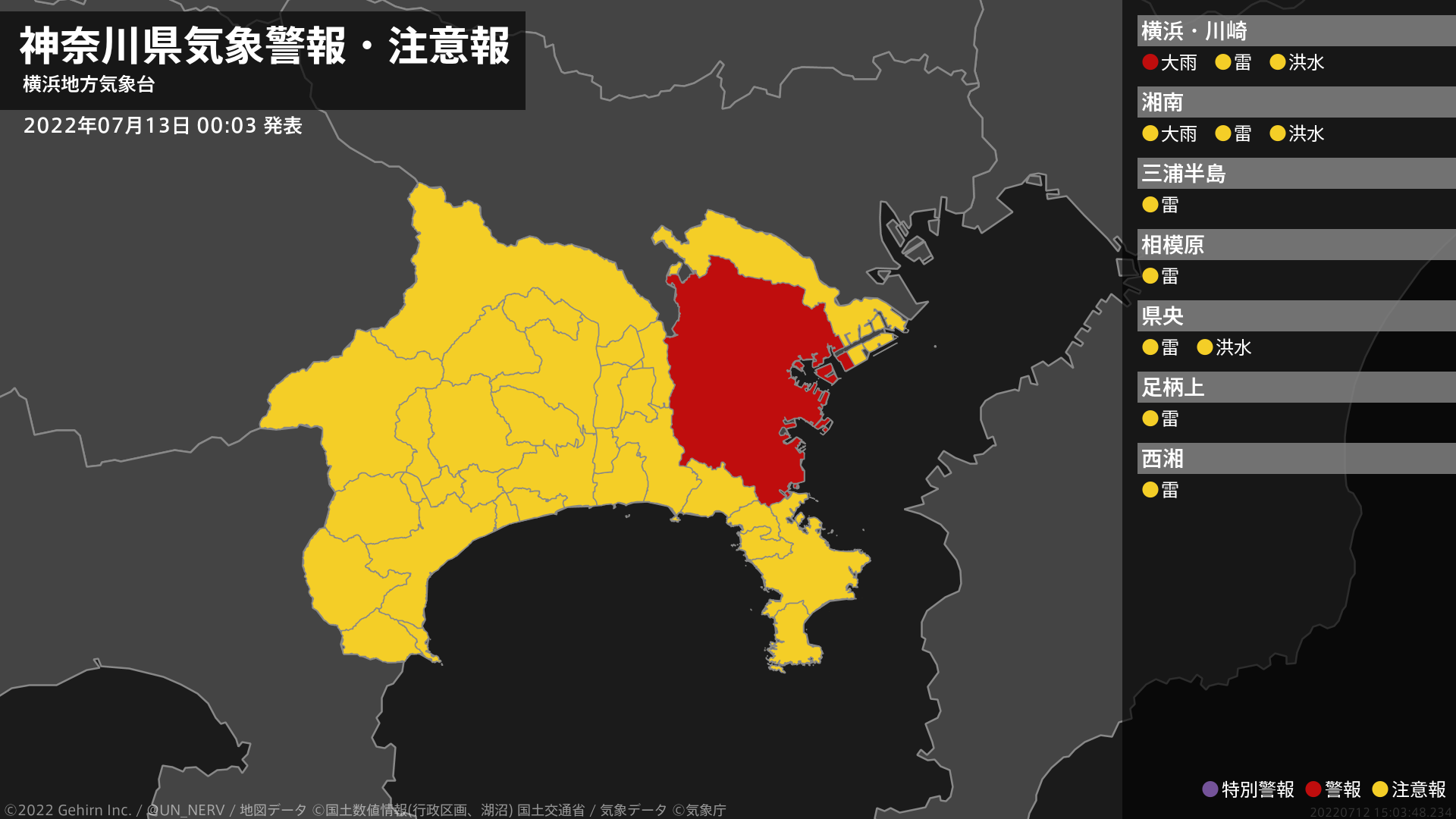 【大雨と雷及び降ひょうに関する全般気象情報 2022年07月12日 16:10】
