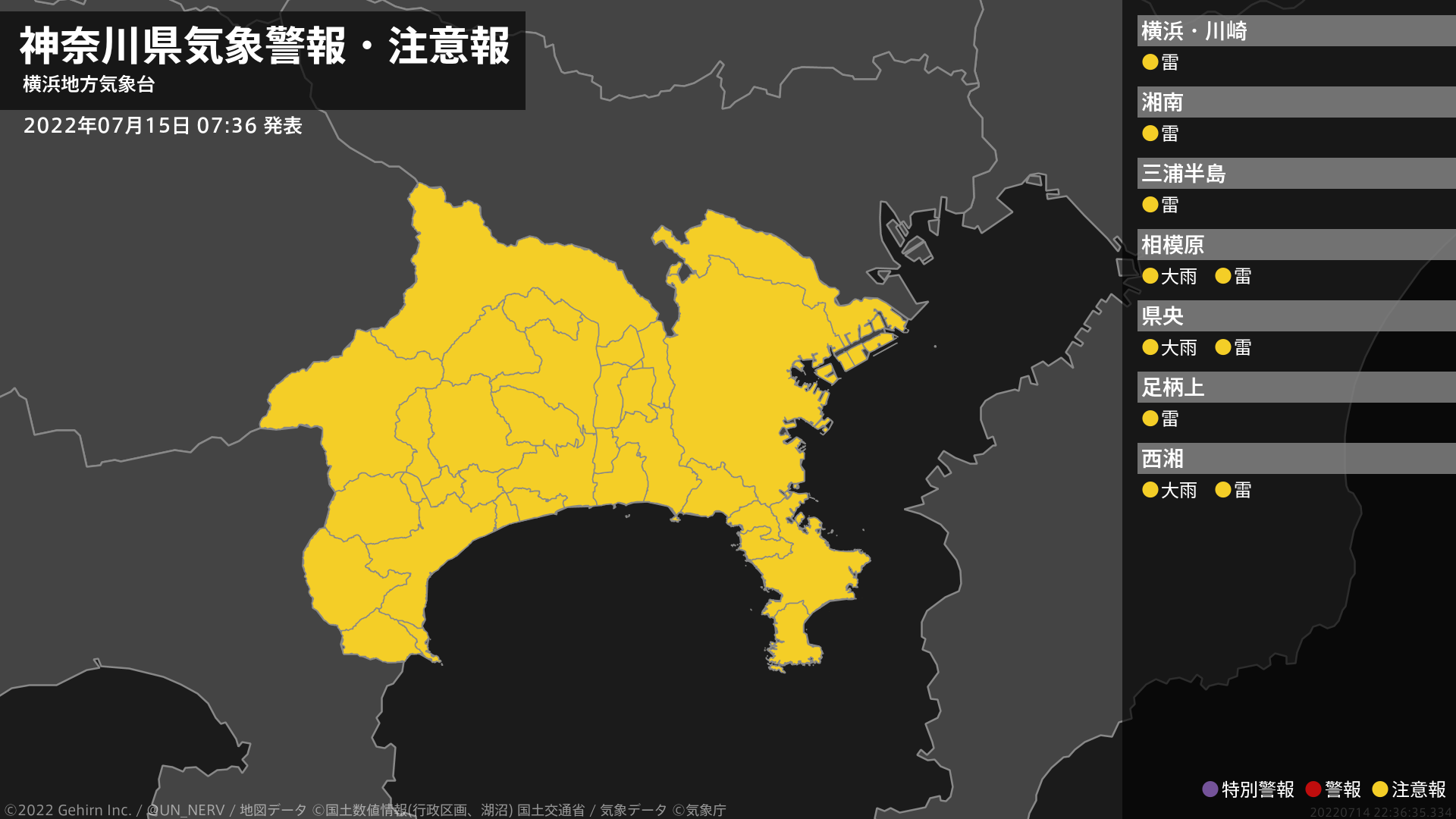 【大雨と雷及び突風に関する全般気象情報 2022年07月15日 10:30】