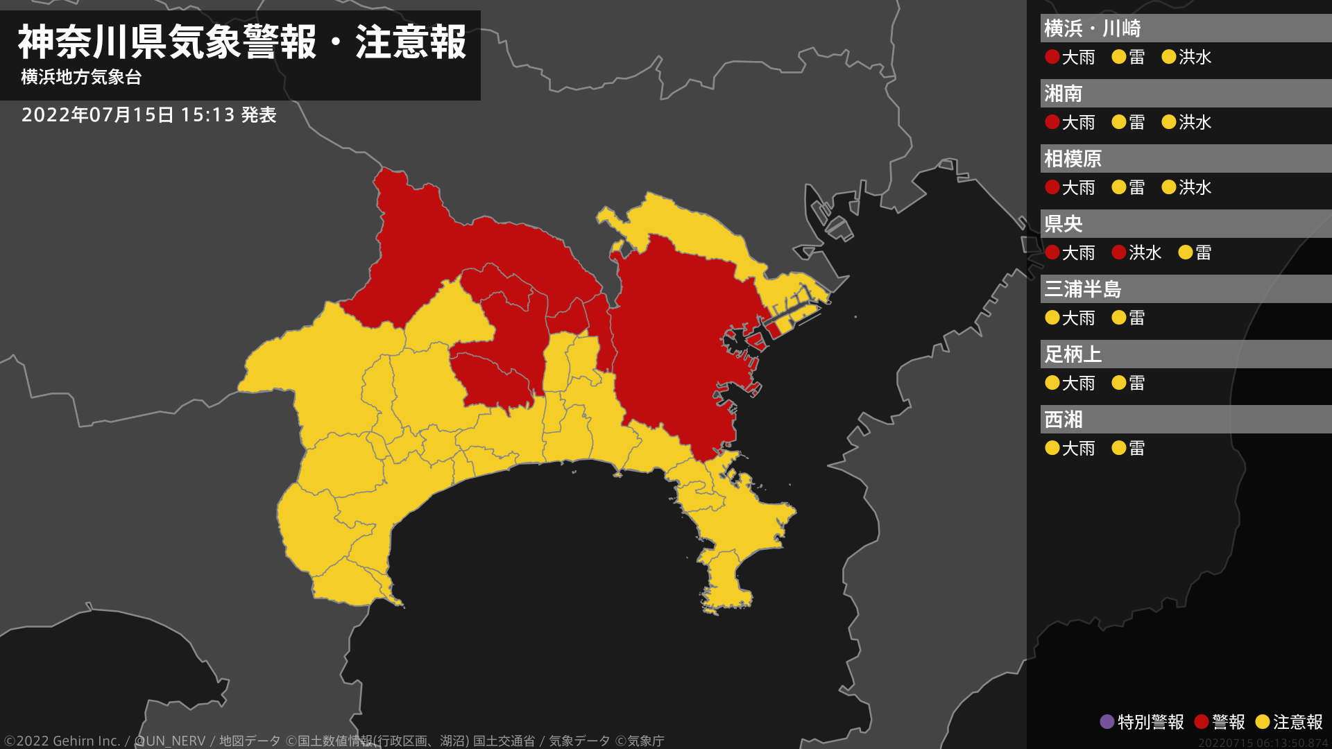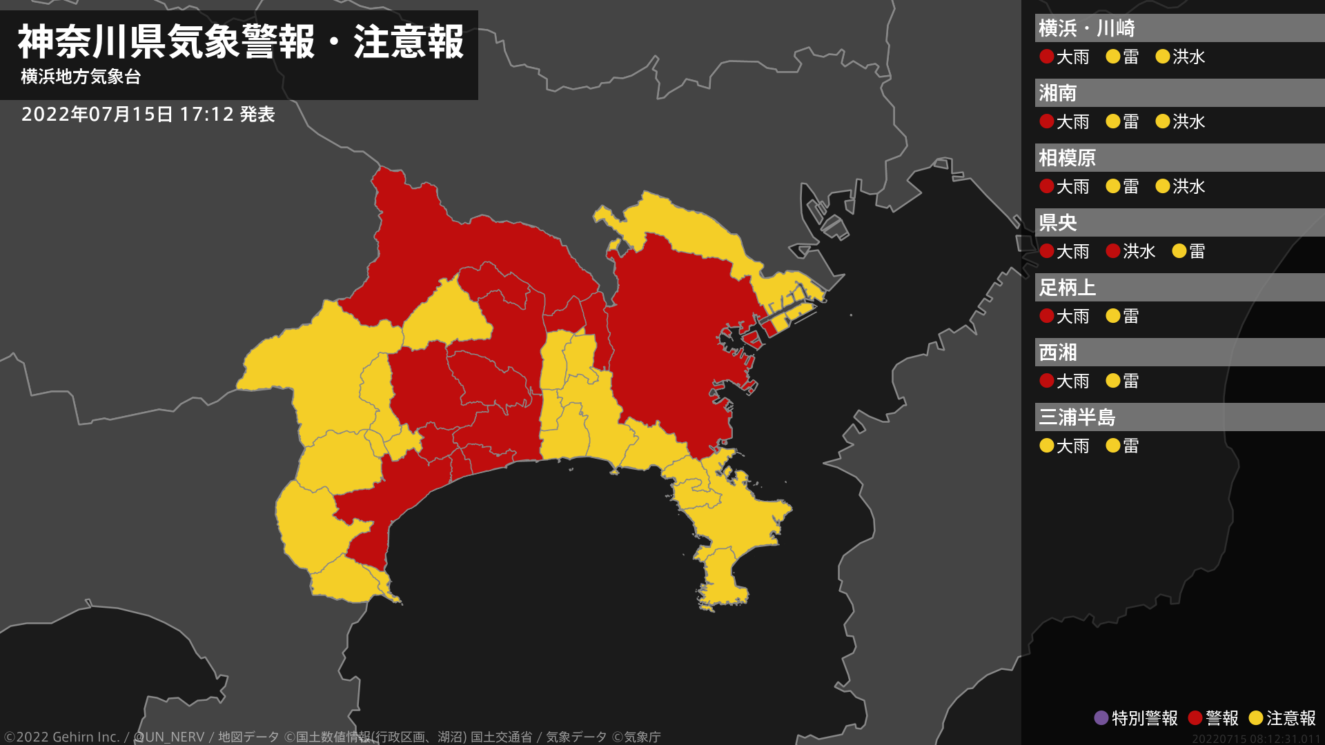 【大雨と雷及び突風に関する全般気象情報 2022年07月15日 16:12】