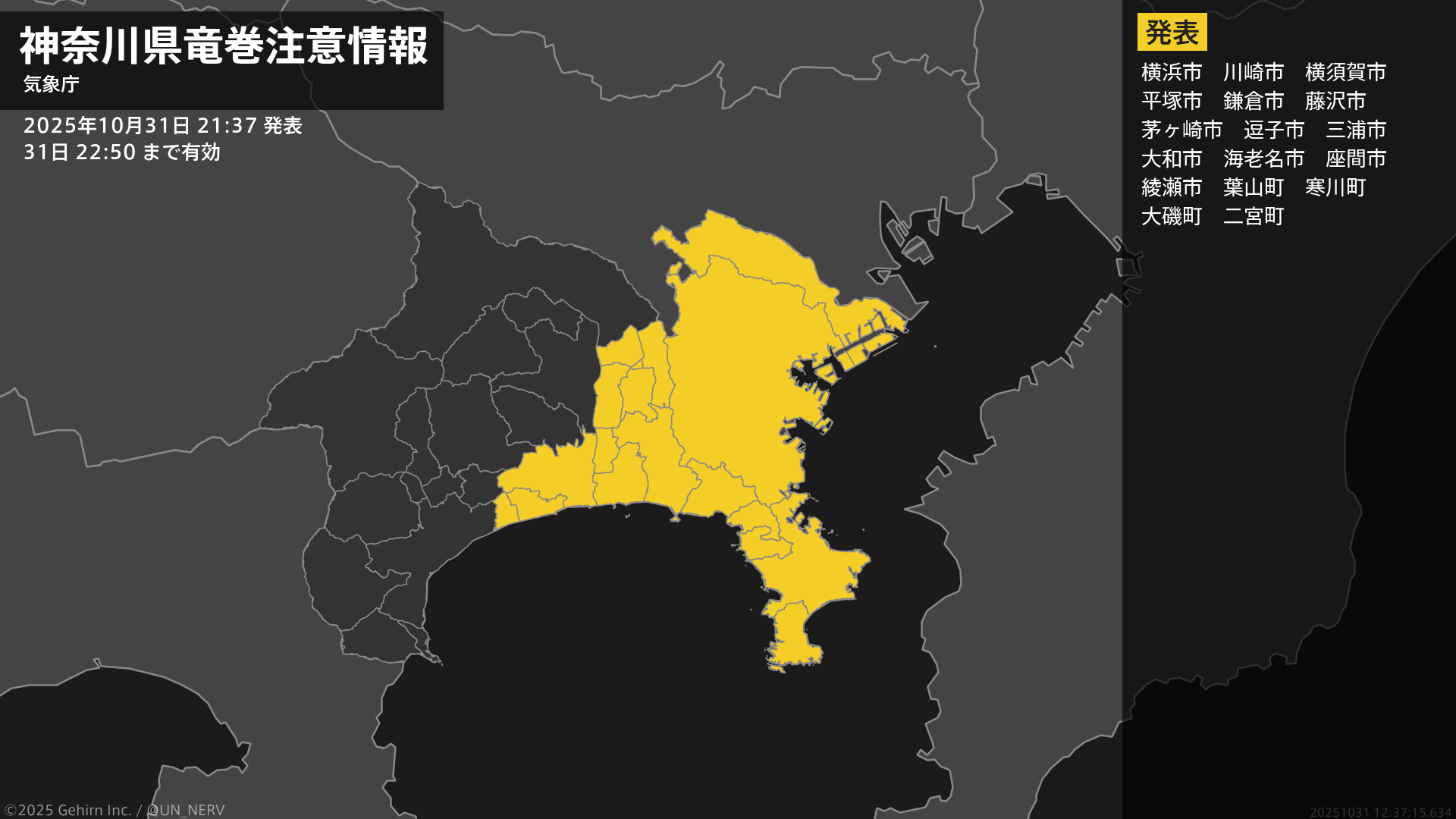 【神奈川県 気象警報・注意報 2025年10月31日 20:39】