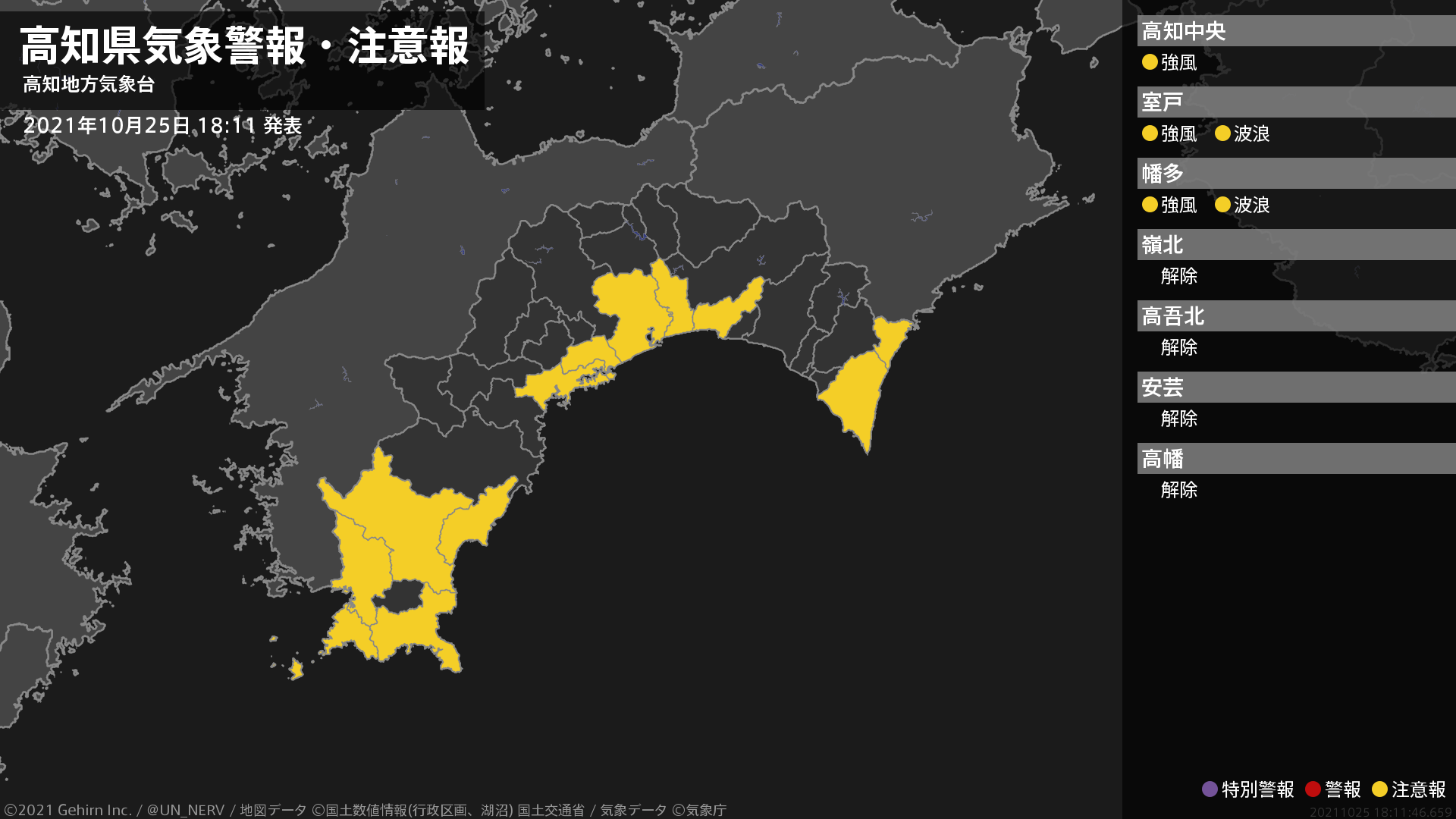 【大雨と暴風及び高波に関する全般気象情報 2021年10月25日 16:26】